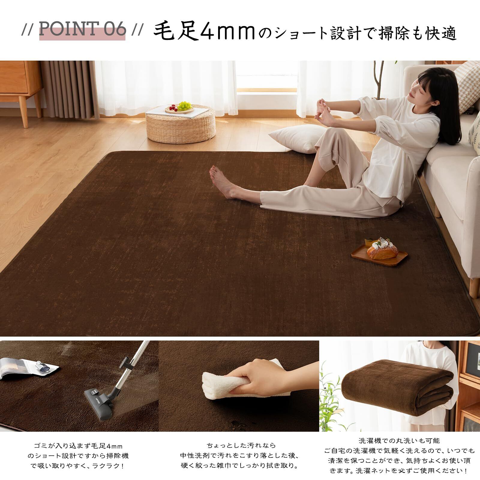 【軽量設計・お手入れ簡単】適度な毛足の長さで、ゴミやほこりが絡まりにくい、掃除機で掃除することもできます。使っていると気になる汚れも、ご家庭で丸洗いができるから安心です。軽量だからお洗濯や模様替えの際の持ち運びもラクラク。※洗濯機洗いする前にお使いの洗濯機の指定容量等をご確認の上、洗濯してください。洗濯機に入らない場合は無理に押し込まず、手洗いしてください。