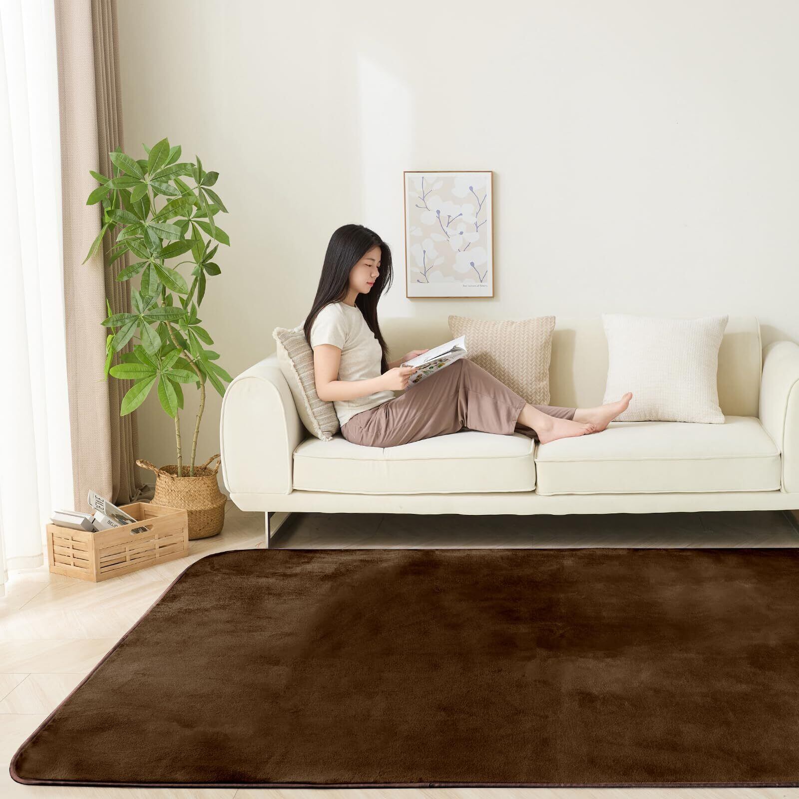 Sun Deco カーペットラグ 洗えるラグマット 絨毯 185×185cm(約2畳) 抗菌 防臭 防ダニ 滑り止め付き オールシーズン 床暖房 ホットカーペット対応 丸洗い フランネル 無地・ブラウン | kki