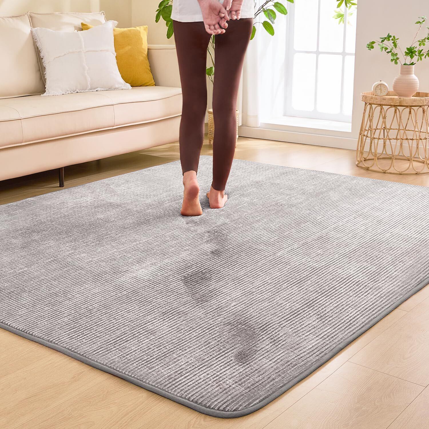 【低反発・分散体圧】低反発ラグは優れたクッション性を持ち、踏み心地が非常に柔らかく、まるで雲の上を歩いているような感覚をお楽しみいただけます。カーペットの魅力は、横になってリラックスする際の心地良さにあります