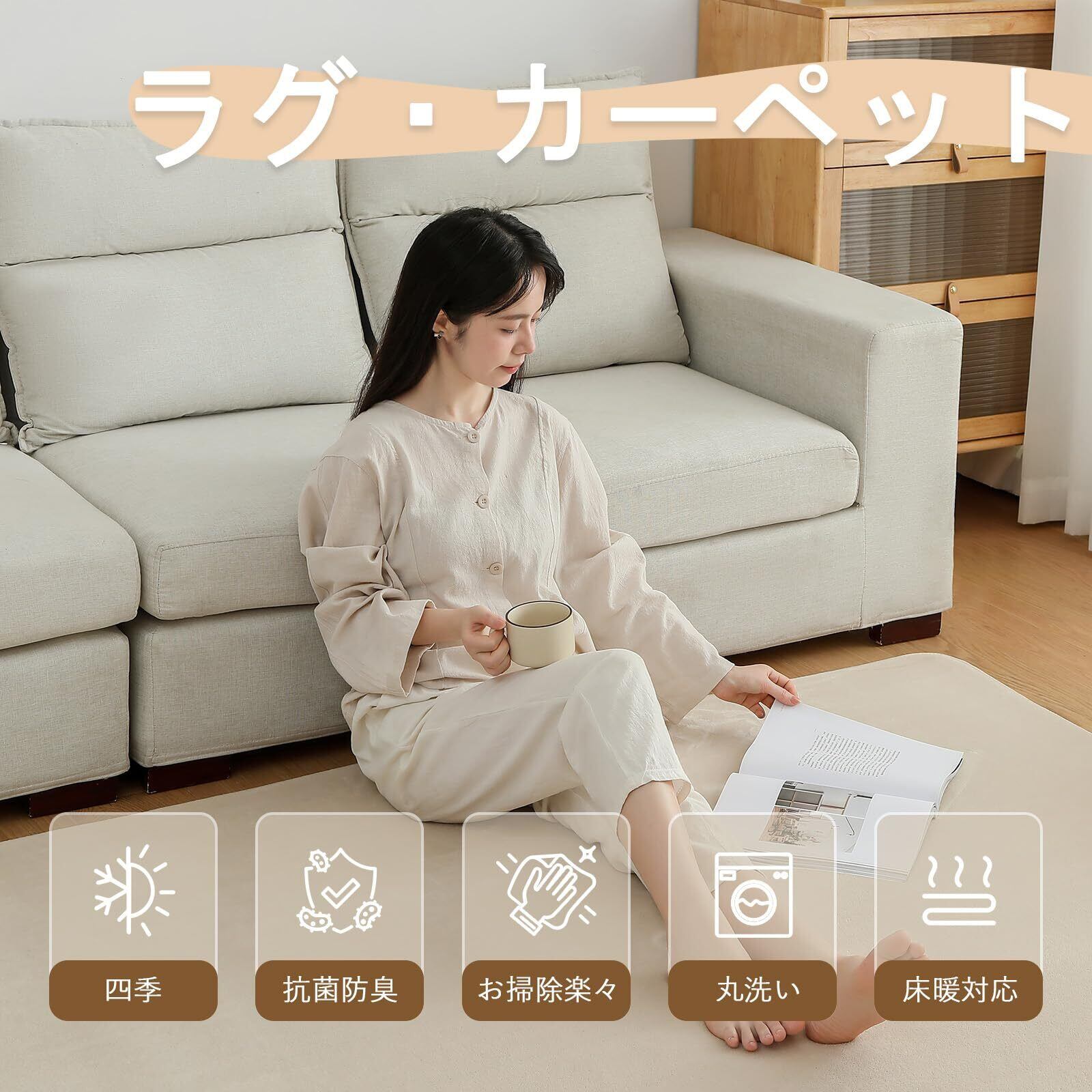 カーペット ラグ ラグマット 短い毛足 厚さの15mm ふわふわ肌さわり アイボリー 無地 滑り止め付き 絨毯 135x185cm≈1.5畳 四季対応 抗菌防臭防ダニ加工 速乾性通気性 お手入れ簡単 軽量設計 | kki