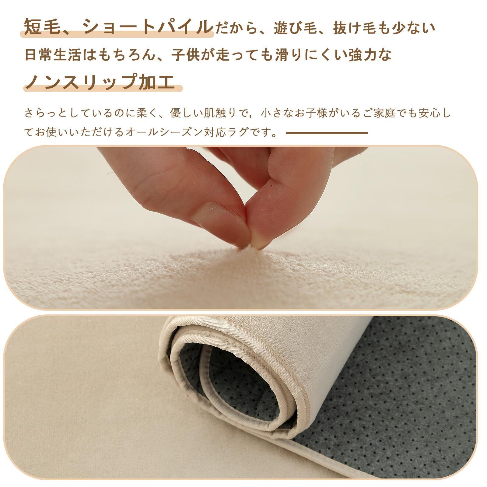 カーペット ラグ ラグマット 短い毛足 厚さの15mm ふわふわ肌さわり アイボリー 無地 滑り止め付き 絨毯 135x185cm≈1.5畳 四季対応 抗菌防臭防ダニ加工 速乾性通気性 お手入れ簡単 軽量設計