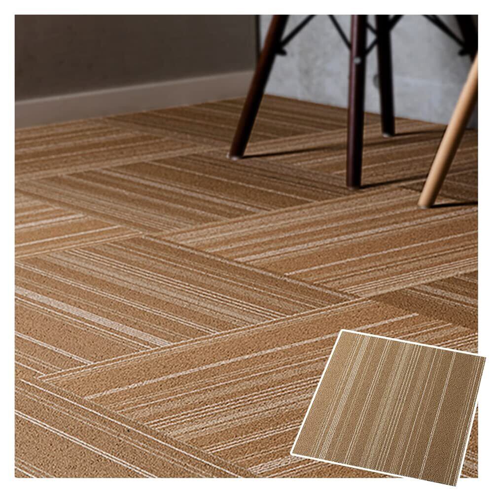 【20枚セット】アイリスプラザ タイルカーペット パイル生地 50×50㎝ ボーダーベージュ 防音 洗える TKP-PP50
