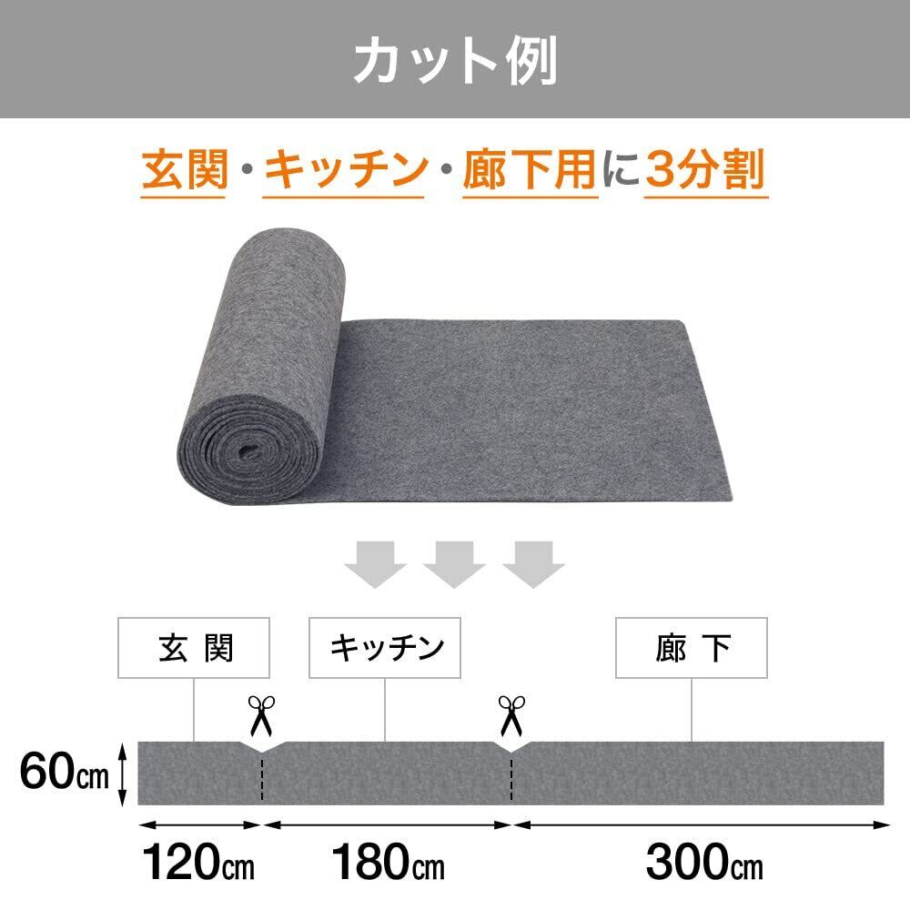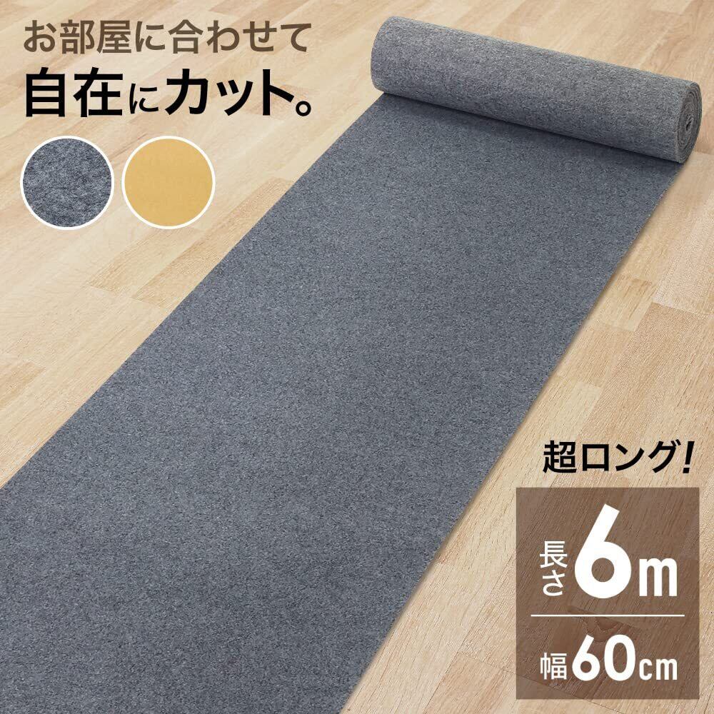 life_mart 廊下敷き ロールカーペット 【 60×600cm 厚さ5mm 】 パンチカーペット 床保護マット 廊下敷 廊下 薄手 カット可能 (1個, グレー)