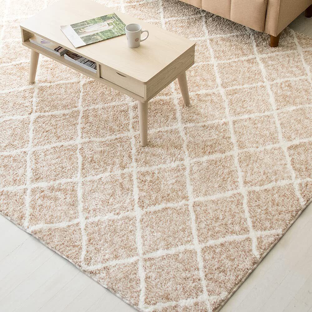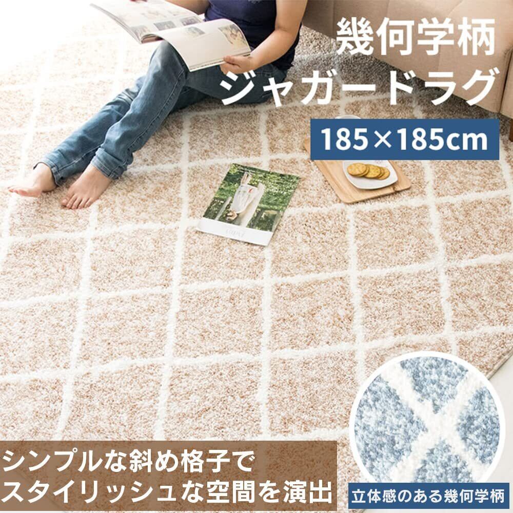 アイリスプラザ 細く短い毛足のジャガード織りでさらっと快適 185×185cm ベージュ 防ダニ加工でいつでも清潔 折り畳み可能で使わない時は省スペースで収納 ラグ マット カーペット 夏用ラグ 夏 夏用 涼しい 涼感 2畳 | kki