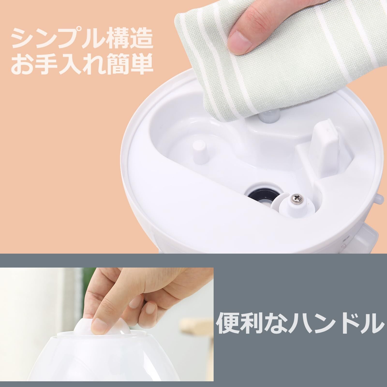 【オシャレなしずく型&お手入れ簡単】幅16、高さ23.5cmのコンパクトサイズ。可愛い涙型で邪魔にならず、卓上にも設置できます。タンクを本体から外せる分離型なので、加湿器ごと持ち運ぶ必要がありません、便利な取っ手付きですから給水も楽々です。タンクは丸洗いに掃除できるため、清潔さを保てます。