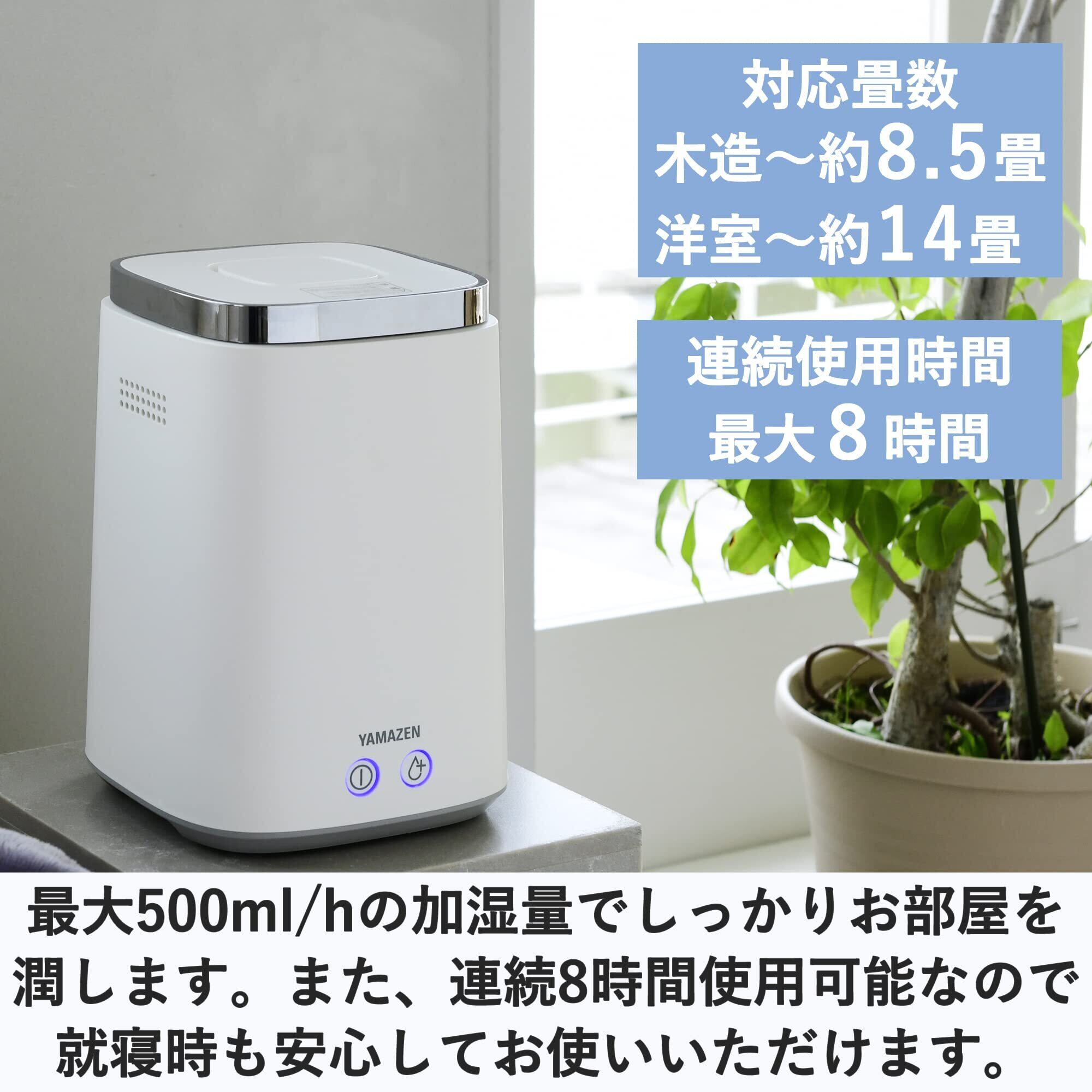 [山善] 加湿器 加熱式 スチーム式 上から給水 (最大加湿 500ml) (タンク容量 2.4L) (木造~8.5畳 / プレハブ洋室~14畳) 卓上 小型 寝室 ホワイト KS-J242(W)