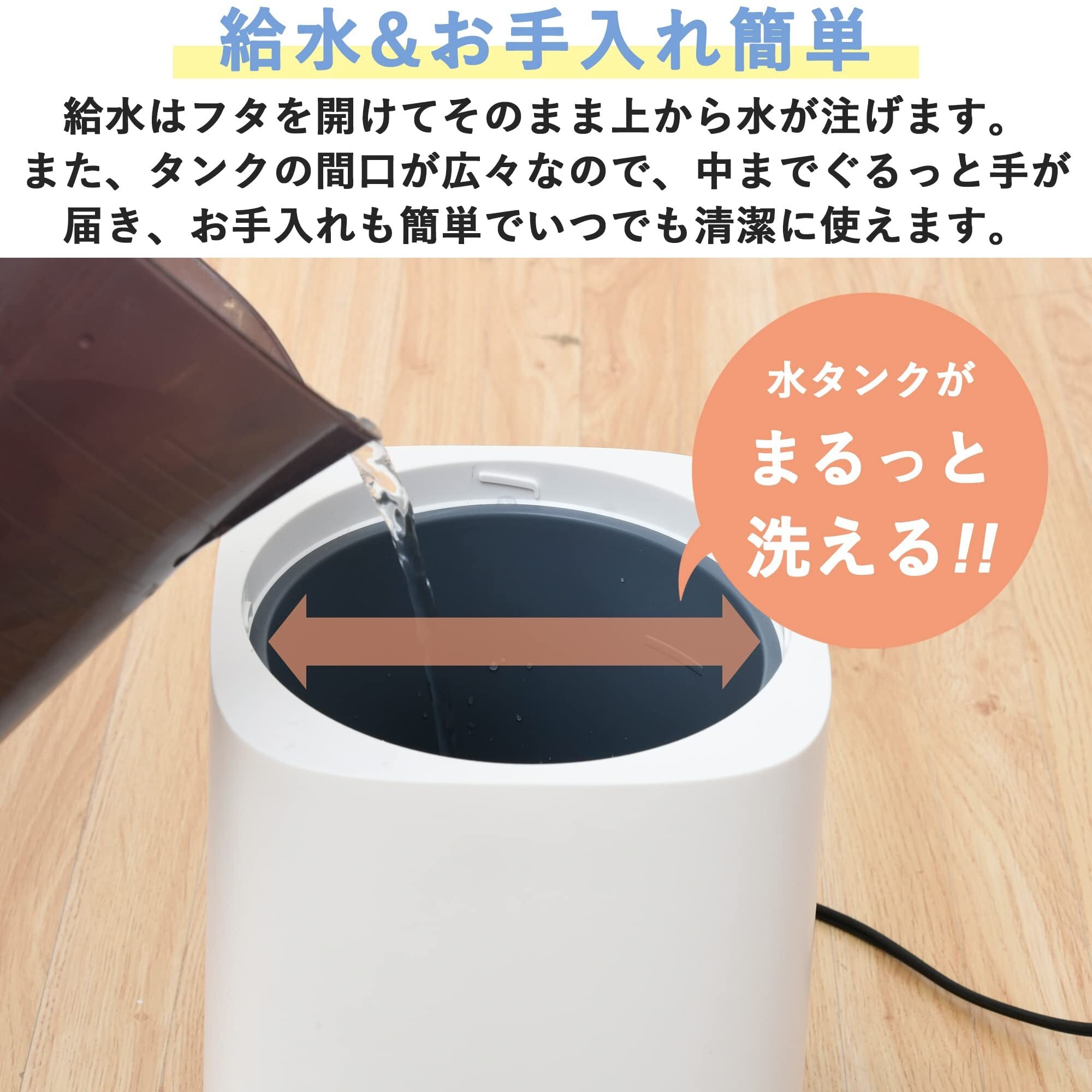 [山善] 加湿器 加熱式 スチーム式 上から給水 (最大加湿 500ml) (タンク容量 2.4L) (木造~8.5畳 / プレハブ洋室~14畳) 卓上 小型 寝室 ホワイト KS-J242(W) | kki