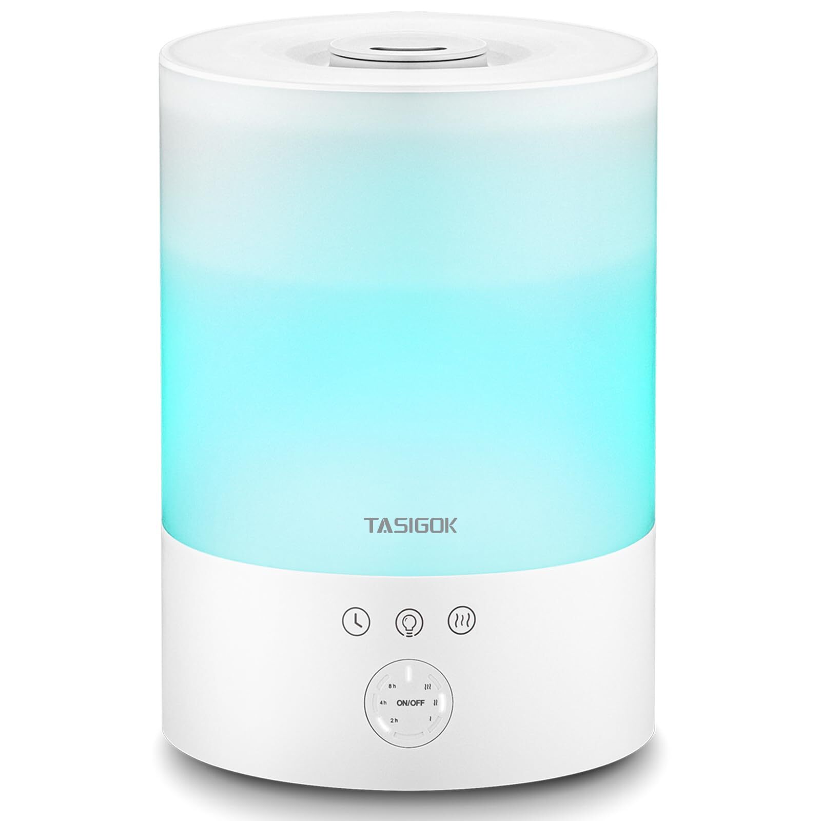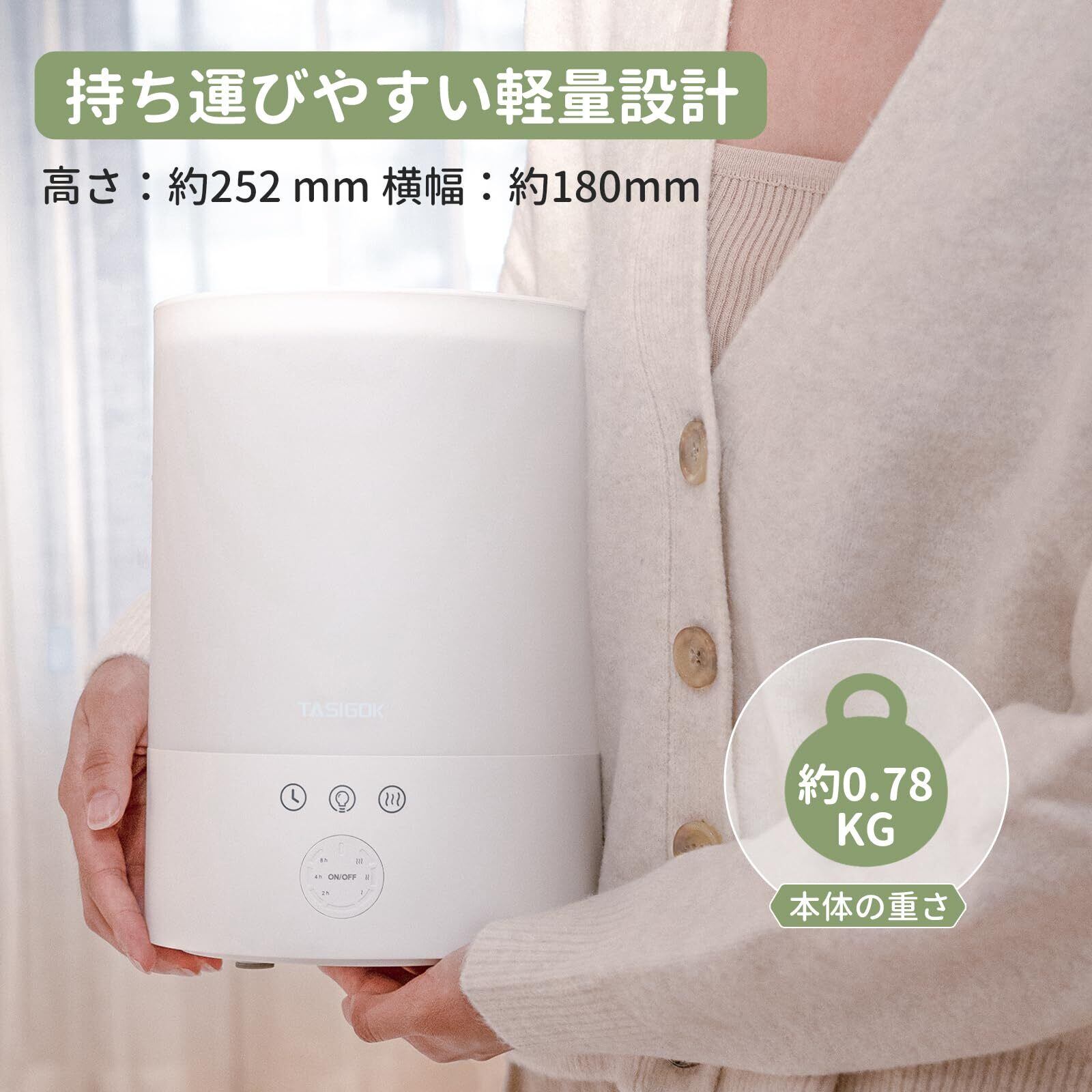 Tasigok 加湿器 小型 卓上 大容量 2.5L 上から給水 アロマ対応 LEDライト 睡眠モード タイマー 3段階ミスト量 おしゃれ お手入れ簡単 強力 超音波式 静音 28dB 省エネ 6畳 15畳 空焚き防止 水漏れ防止 寝室 オフィス リビング コンパクト 次亜塩素酸水 乾燥対策 ホワイト