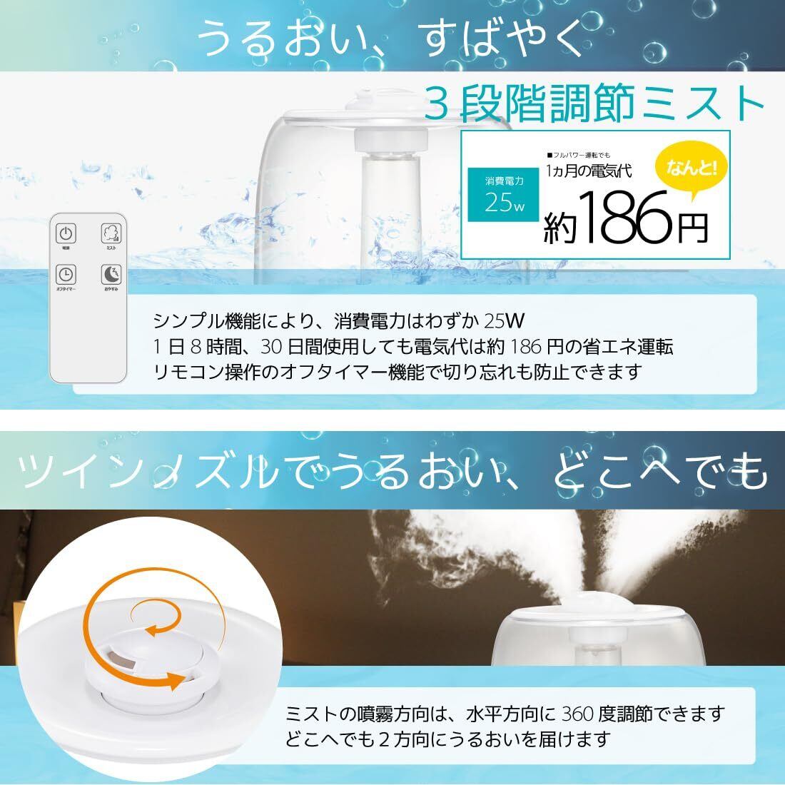 加湿器 大容量 超音波式 次亜塩素酸水対応 4.5L 抗菌フィルター搭載 上から給水 長時間 56時間連続加湿 ハイパワー 自動加湿調整 18畳対応 アロマ対応 4.5リットル 大型 空焚き防止機能 360度回転 ツインノズル HG-ASL010 | kki