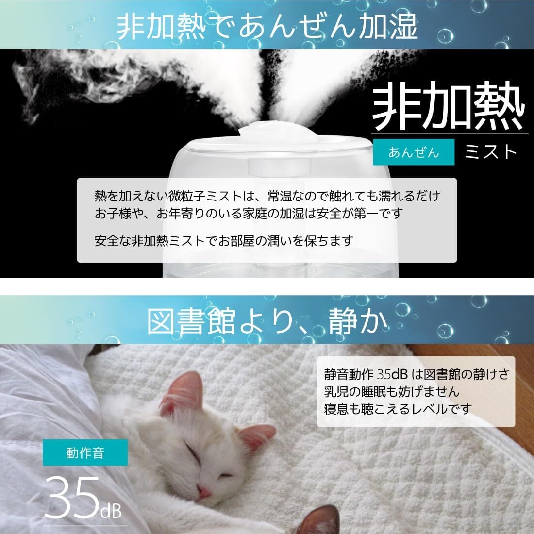 超静音運転35dBの静けさ、無音に近いので置く場所を選びません。動いていない?と間違えるほどの静音運転、お休みしているお子様や・お年寄りの側でも気になりません。