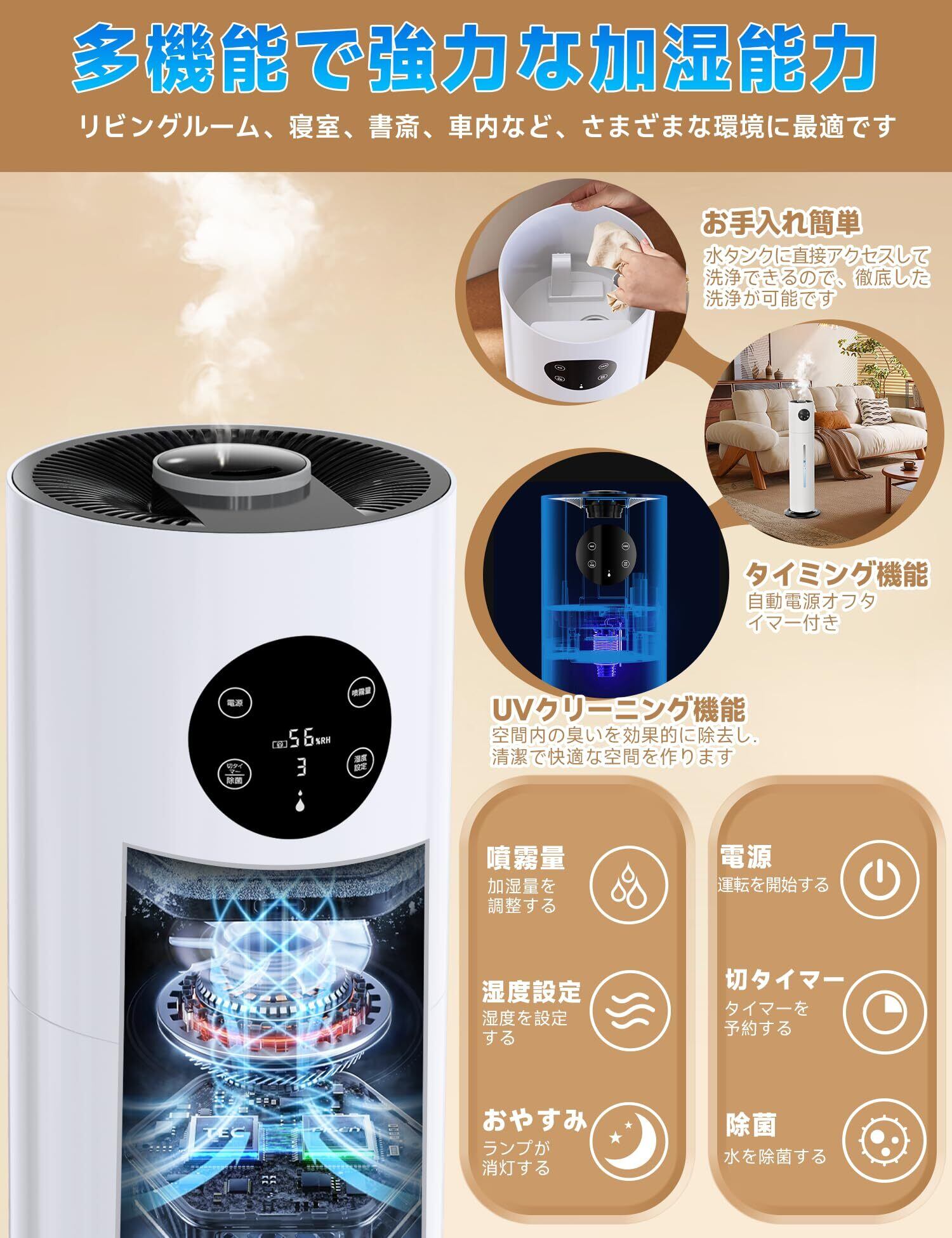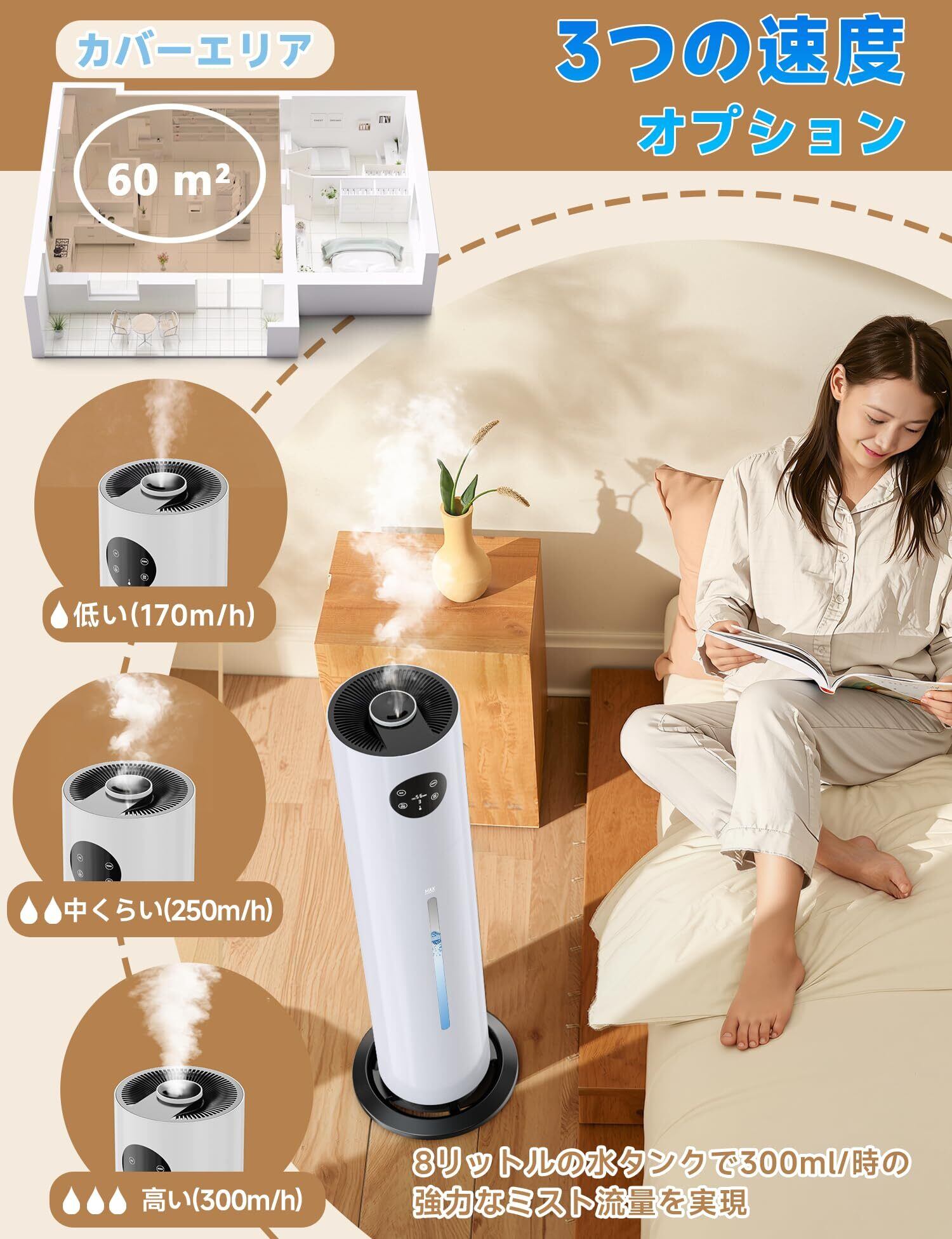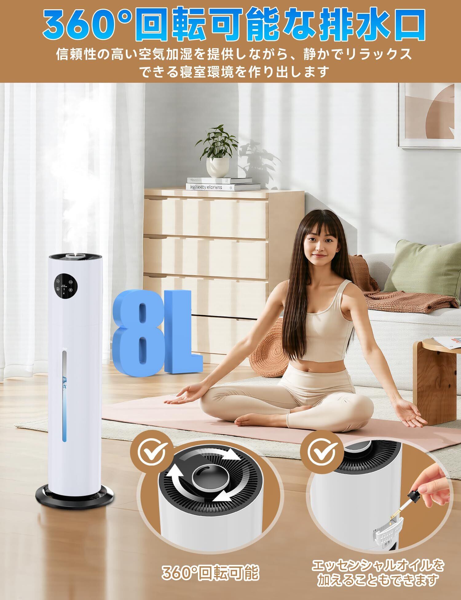 VOTUDX 加湿器 大容量 8L 超音波式 寝室/リビング/オフィス(ホワイト)