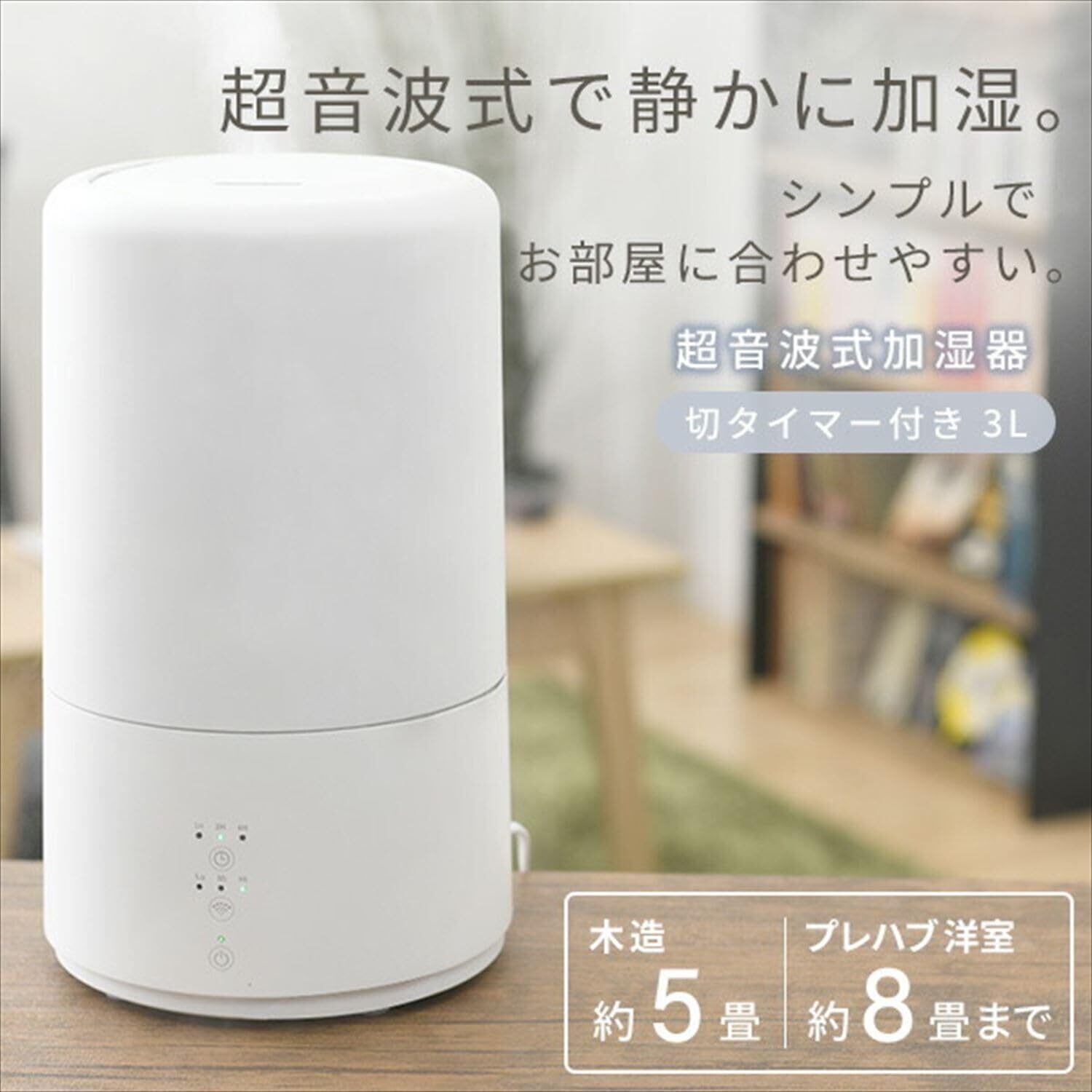 [山善] 加湿器 超音波加湿器 3L 卓上 オフィス おしゃれ 木造約6畳・プレハブ約8畳 ホワイト MZ-L301(W)