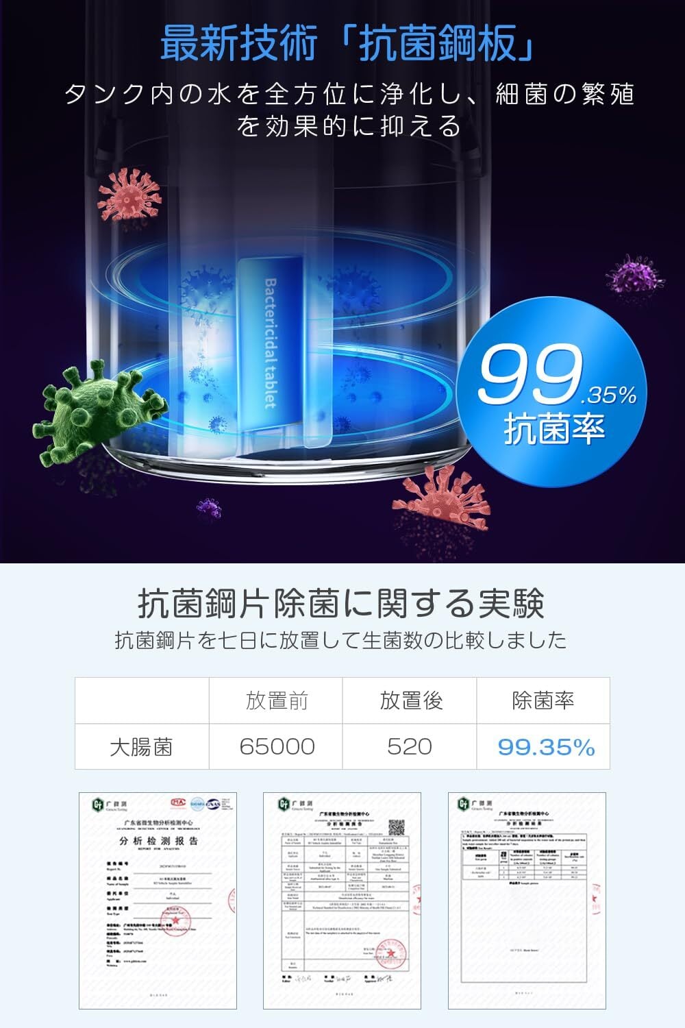 【抗菌鋼板採用&超静音設計で清潔&快適】水に触れる部分には抗菌鋼板を採用し、水タンク内の微生物の繁殖を抑制。次亜塩素酸水にも対応しているため、常に清潔で安心できるミストを届けます。加えて、作動音はわずか26dB以下と図書館並みに静か。夜間の睡眠中やオフィスでの集中作業時にも音が気にならず、快適な環境を保てます。静音設計にこだわった卓上 コンパクト加湿器は、寝室や仕事場に置いても違和感なく溶け込み、空気清浄機のように心地よい環境をサポートします。