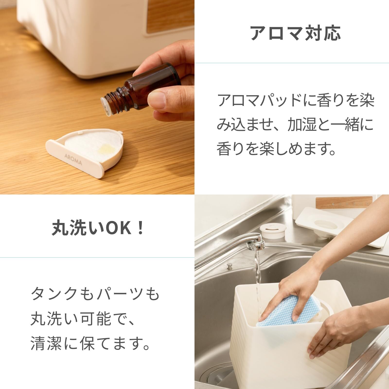 ■アロマ対応 お気に入りの香りをプラスしてリラックス。 アロマトレイに2〜3滴垂らすだけで、心地よい香りを満喫します。