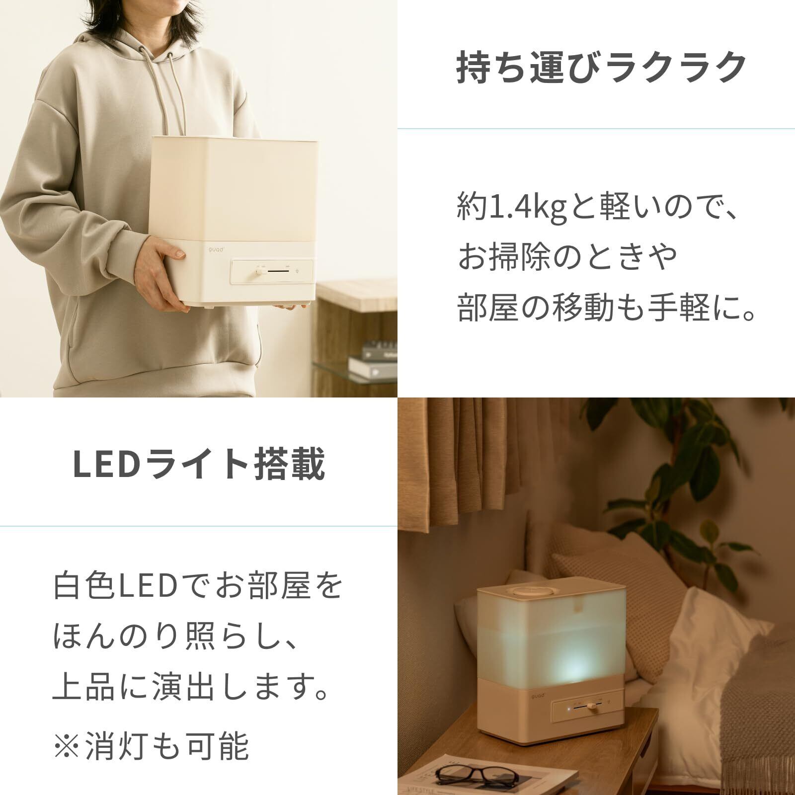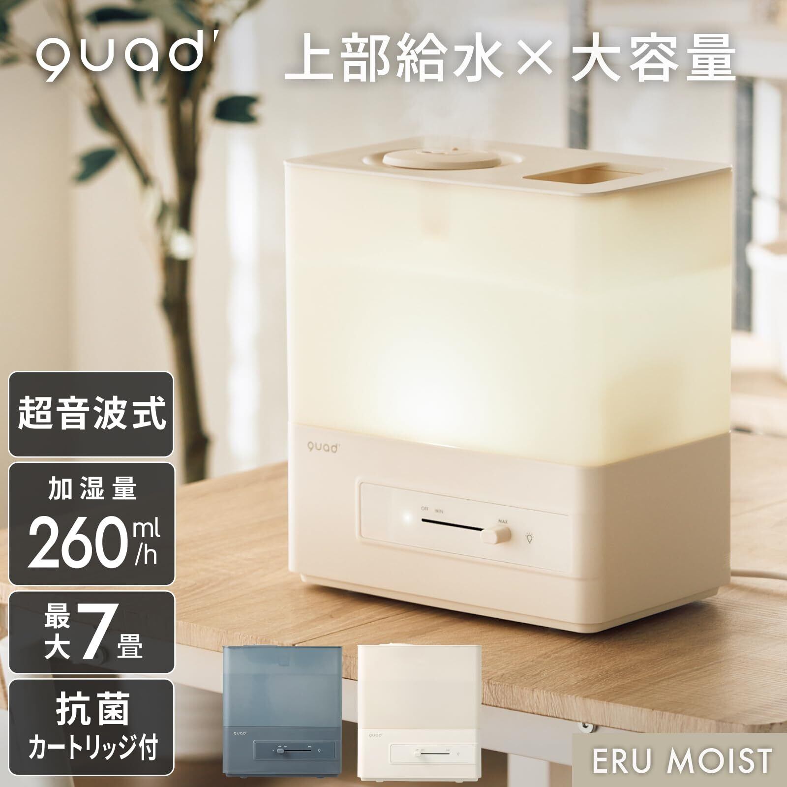 QUADS(クワッズ) 大容量 4L 超音波加湿器 7畳対応 最大加湿260ml/h 上部給水 アロマ対応 抗菌カートリッジ LEDライト ERU MOIST エルモイスト (アイボリー)