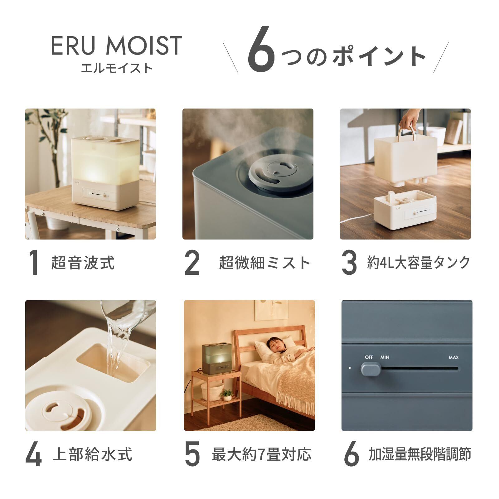 QUADS(クワッズ) 大容量 4L 超音波加湿器 7畳対応 最大加湿260ml/h 上部給水 アロマ対応 抗菌カートリッジ LEDライト ERU MOIST エルモイスト (アイボリー) | kki