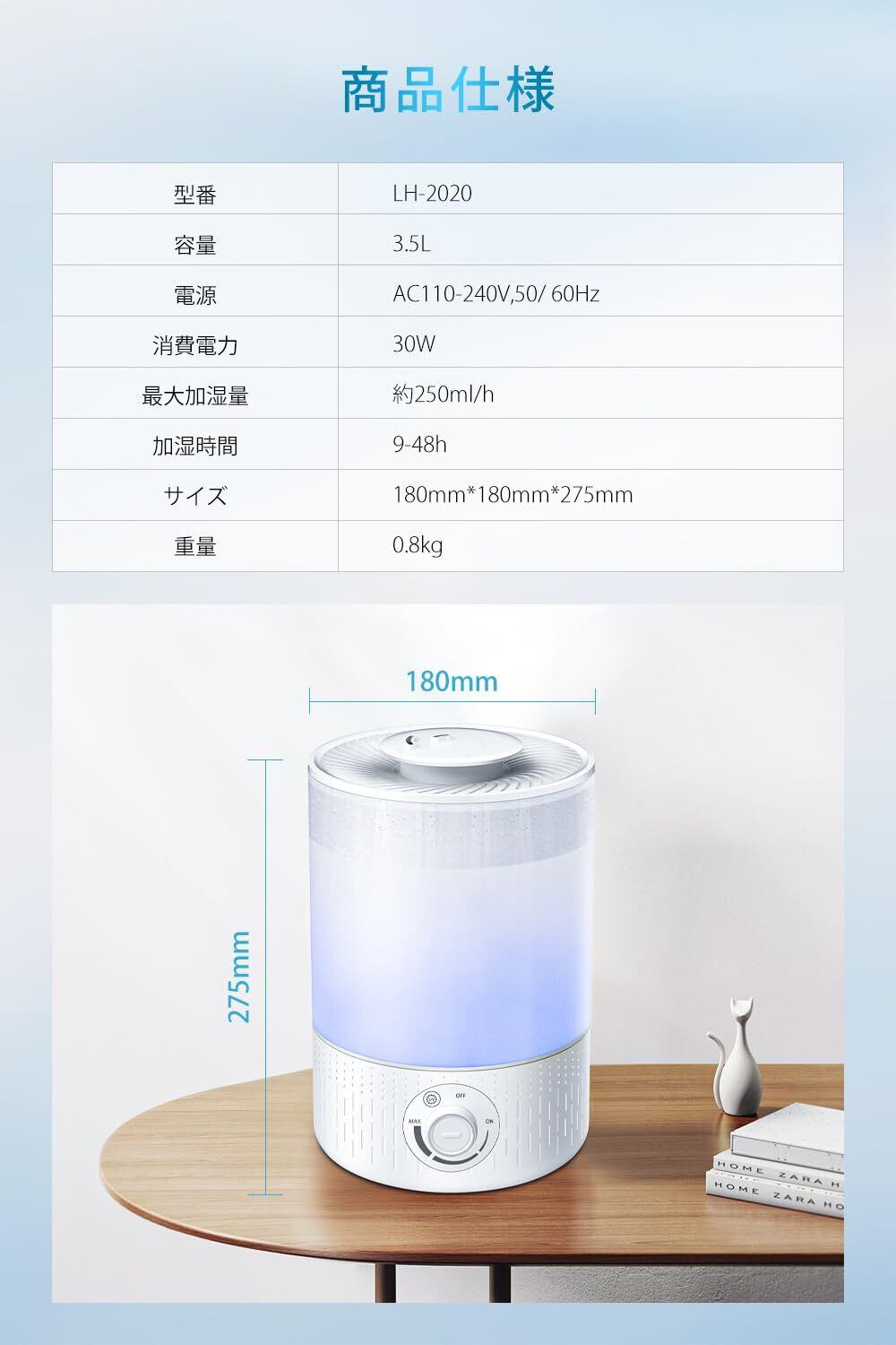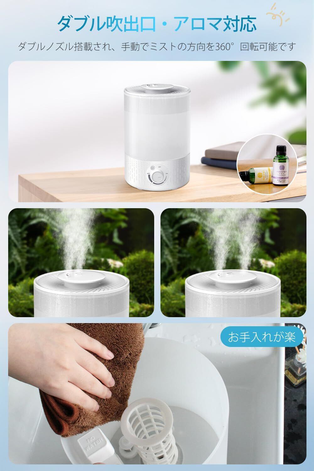 加湿器 大容量 卓上 【UVライト除菌・3.5L大容量・54時間作動】超音波式 加湿器 アロマ対応 かしつき 次亜塩素酸水対応 上から給水 無階段ミスト調整 54時間連続作動 ダブル吹出口 360°調整 無階段ミスト調整 水漏れ防止 空焚き防止 乾燥対策 省エネ 寝室/リビング/オフィス向け PSE認証済み ホワイト