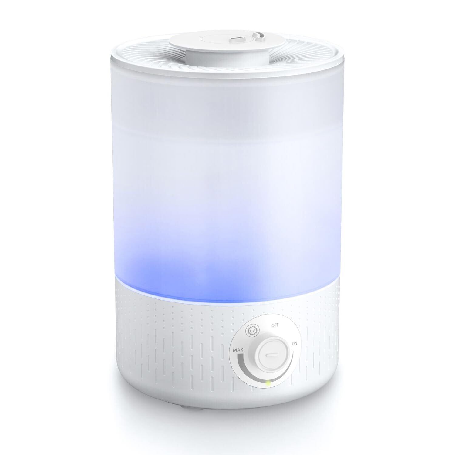 【ダブル360°吹出口回転 ✜ 簡単操作】ダブルノズルも装備されており、手動で360°回転させることが可能です。ダイヤルとUVライト用スイッチだけを備えたシンプルな操作で、複雑な機能は一切ありません。男女問わず年齢を問わずお使いいただけるシンプルで洗練されたデザイン。日常使用に最適な加湿器です。