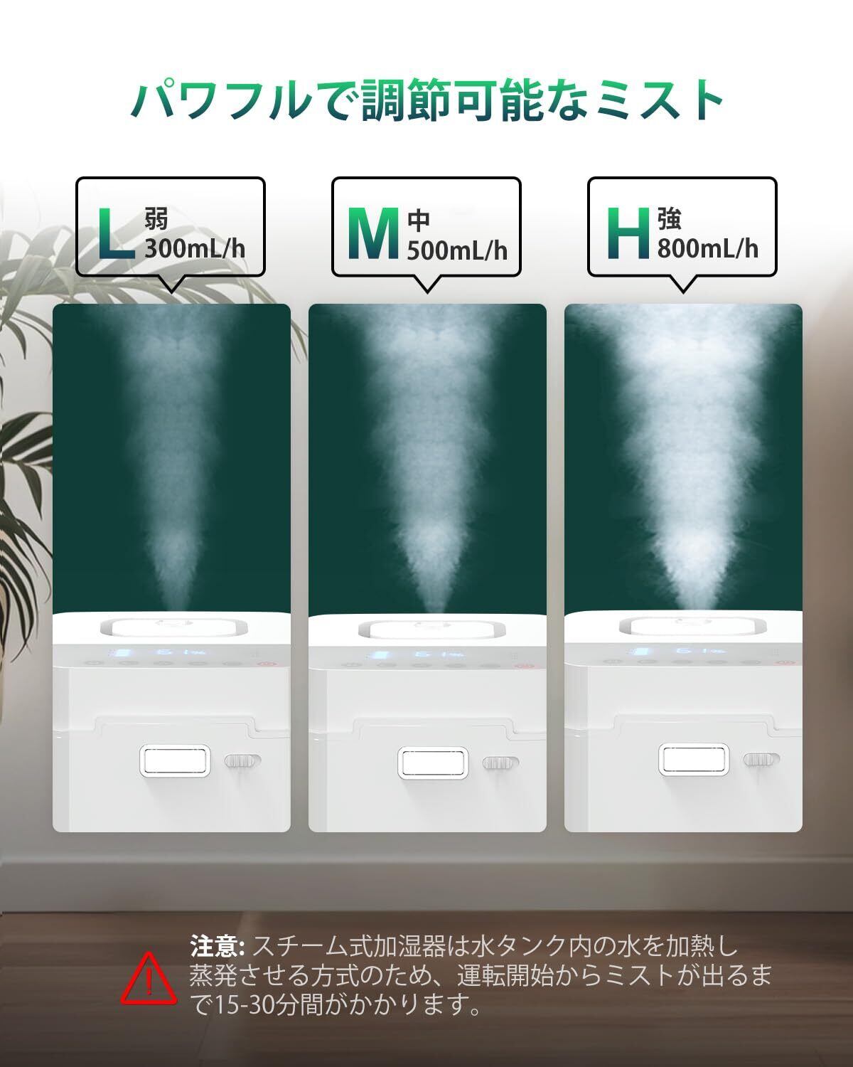 加湿器 スチーム式 加熱式 大容量. 3.3L 加湿量 800ml/h 22叠 100℃高温除菌 ミスト3段階 恒湿 Mifasol加湿器 切タイマー付き お手入れ簡単 静音 空焚き防止 寝室/子供部屋/事務所/居間/リビング/オフィス (ホワイト)