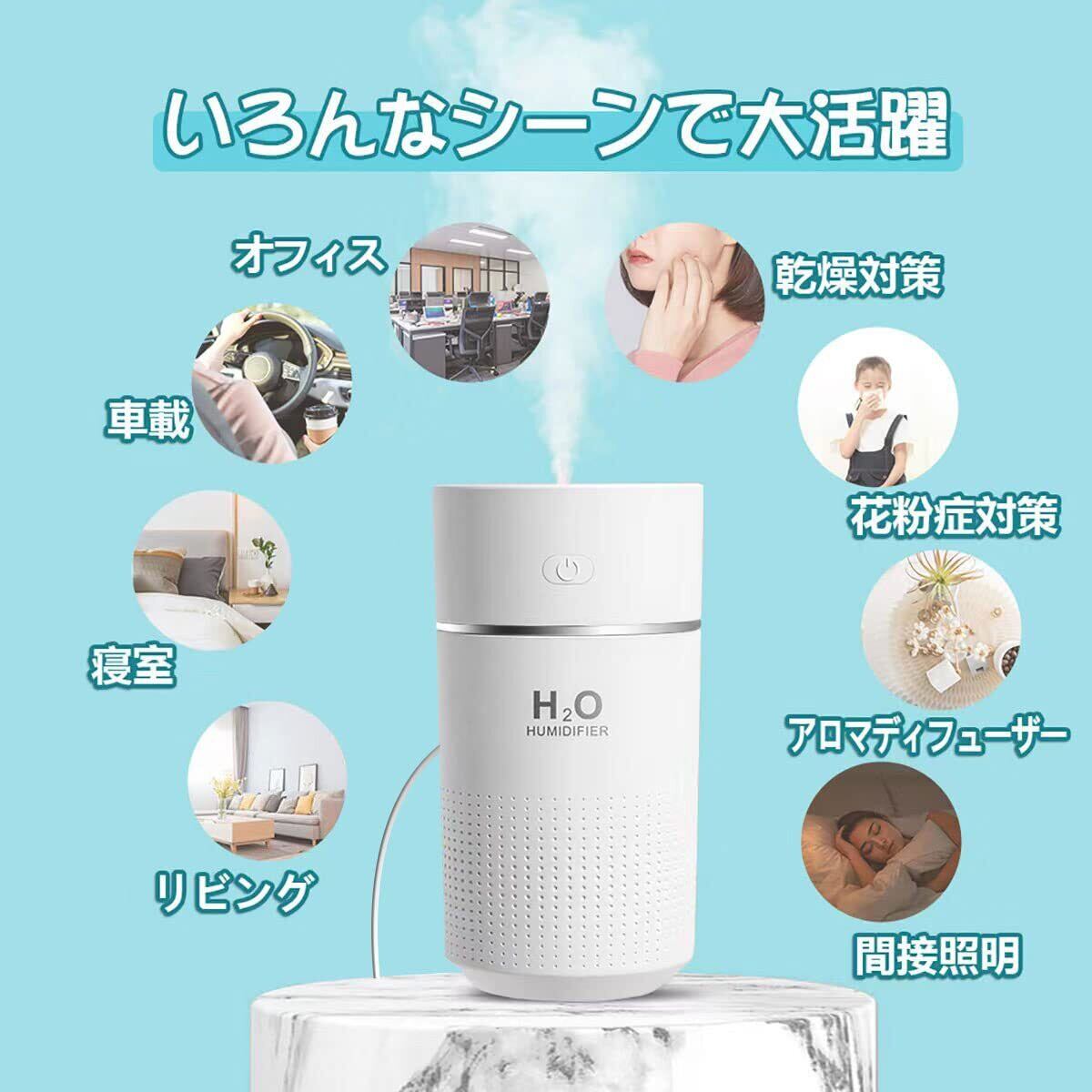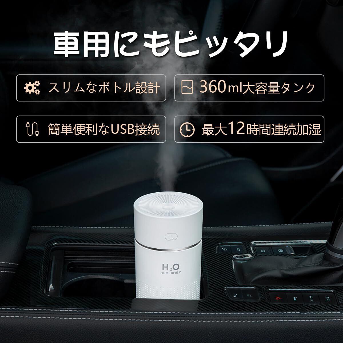 KMJ 卓上 加湿器 小型 超音波式 静音 ナイトライト 強力 大容量 360ml USB アロマ 対応 ポータブル ミニ かしつき デスク オフィス 寝室 車 メーカー2年 プレミアム ( ホワイト )