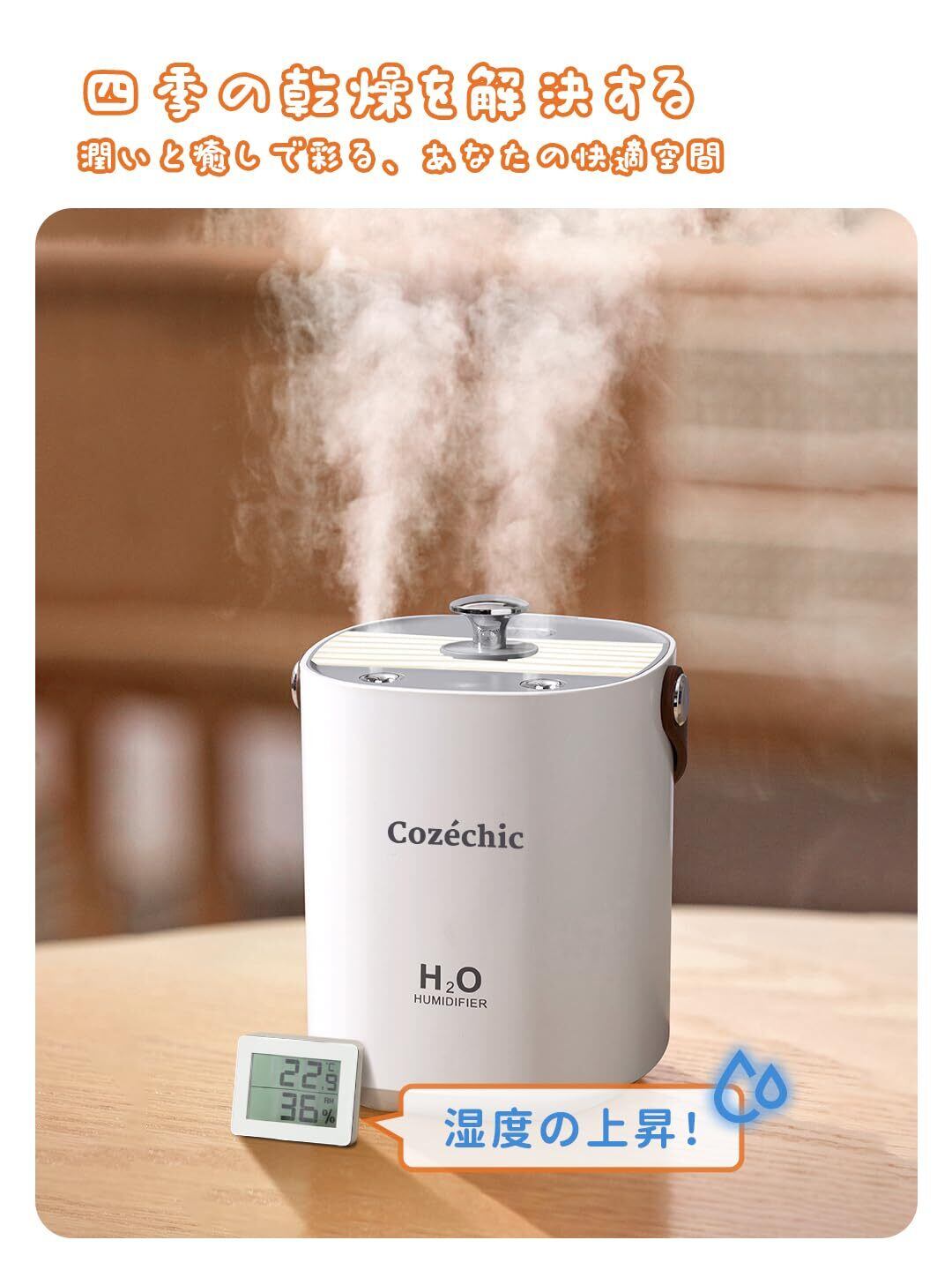 Cozéchic 加湿器 小型 卓上加湿器 アロマディフューザー 自動停止機能 LEDライト Wノズル 空焚き防止 Type-C給電式 長時間連続加湿 静音 持ち運び便利 乾燥対策 大容量1200ML オフィス/寝室/部屋/家庭用