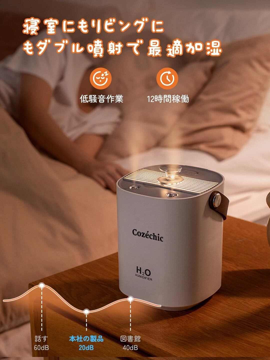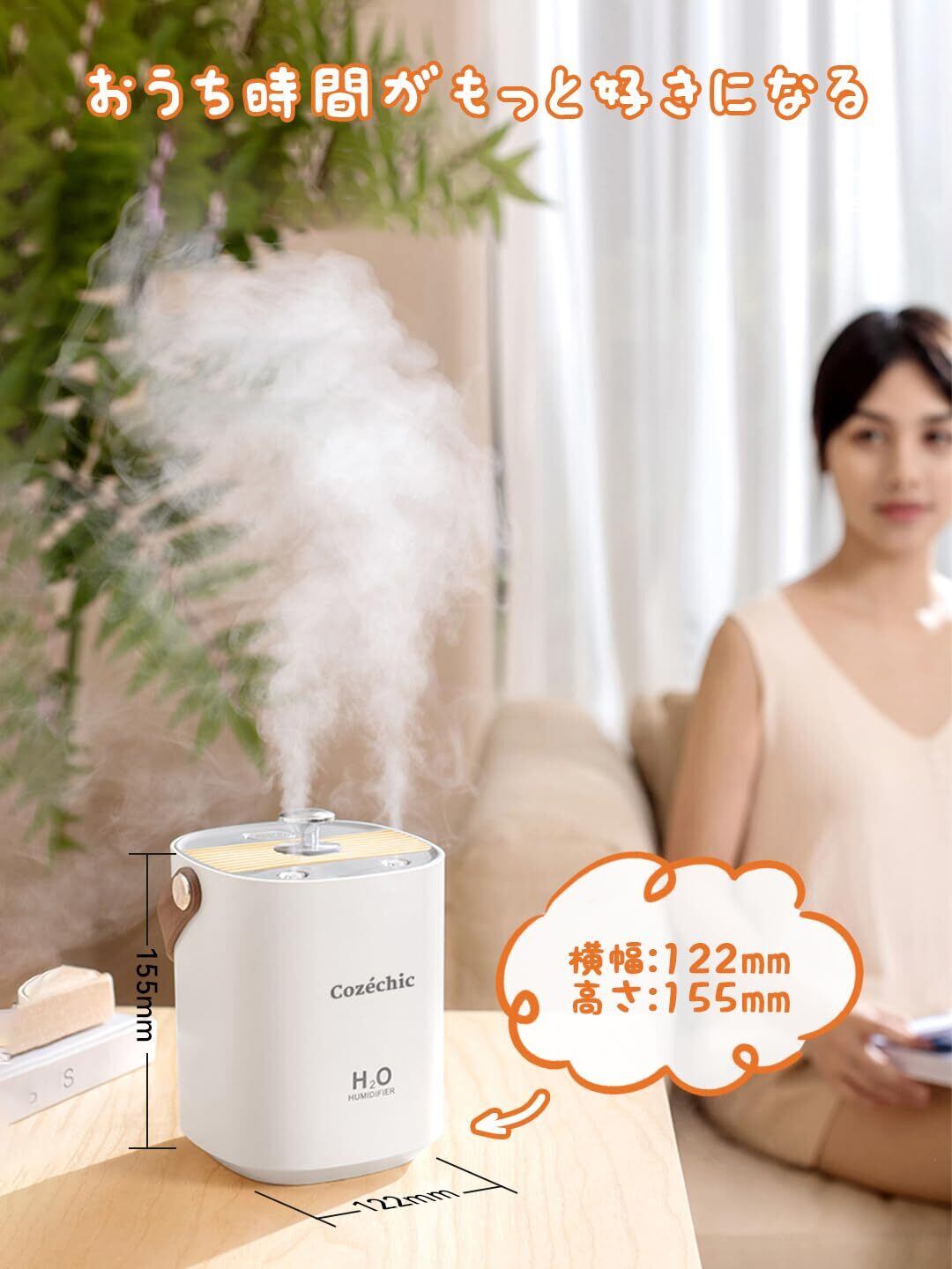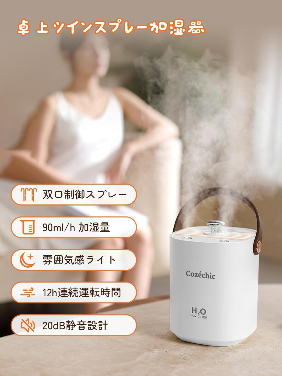 Cozéchic 加湿器 小型 卓上加湿器 アロマディフューザー 自動停止機能 LEDライト Wノズル 空焚き防止 Type-C給電式 長時間連続加湿 静音 持ち運び便利 乾燥対策 大容量1200ML オフィス/寝室/部屋/家庭用 | kki