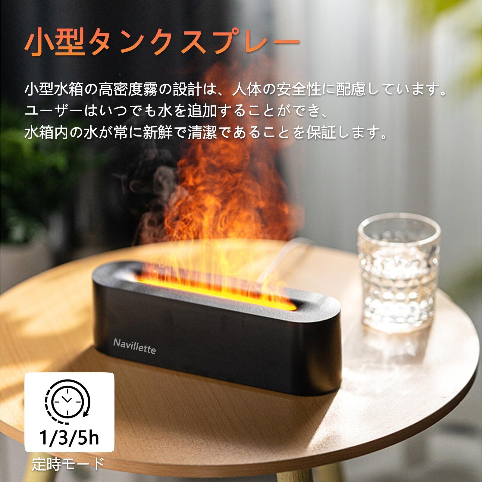 【光と香りの二重癒し空間】 本物の炎のようにゆらめく7色LEDと霧が融合。ユーザーから「見つめるだけでストレス解消」「霧の中の炎に癒される」と絶賛のデザイン。寝室やオフィスを温もり溢れる癒し空間へ変えます。