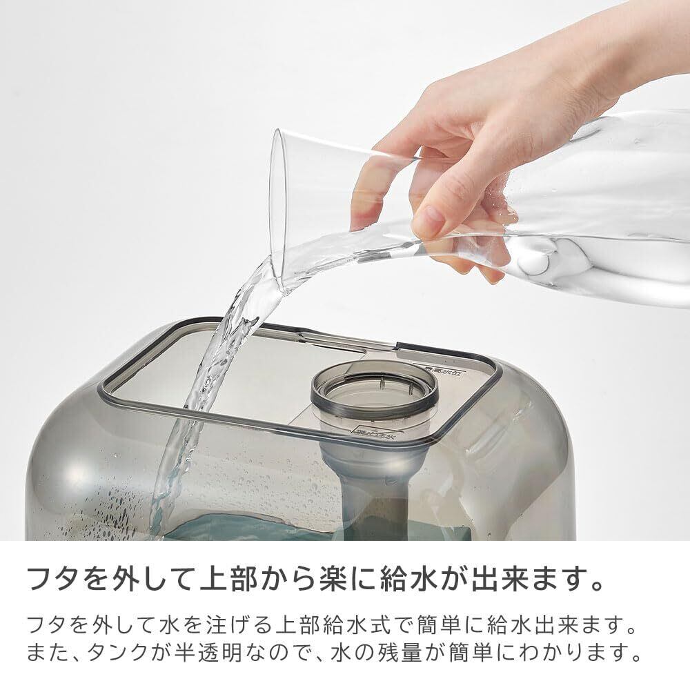 半透明の水タンクは水の残量も分かりやすく、上から簡単に水を注ぎ入れることができる上部給水型で給水もラクラク。