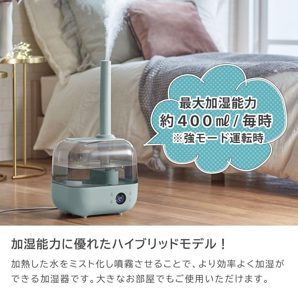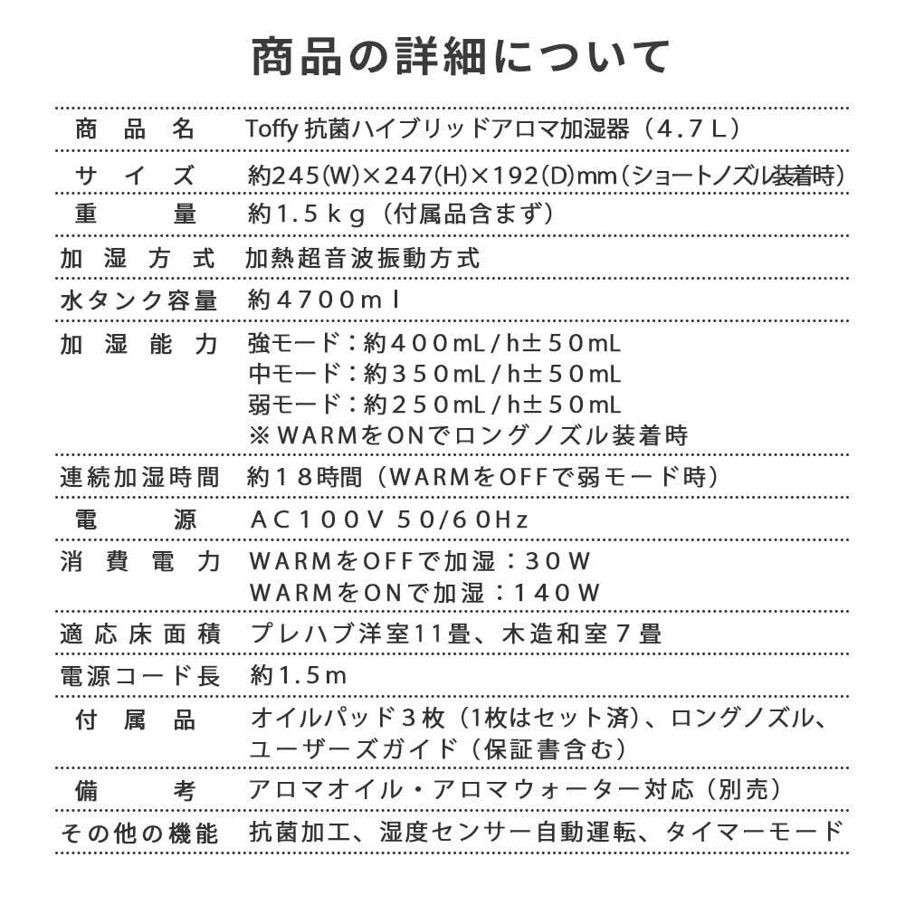 【Toffy/トフィー】 抗菌ハイブリッドアロマ加湿器 [4.7L] HF08 上部給水式 長時間加湿 ロングノズル 自動湿度コントロール機能 タイマー付き アロマウォーター対応 抗菌加工 ペールアクア HF08-PA | kki