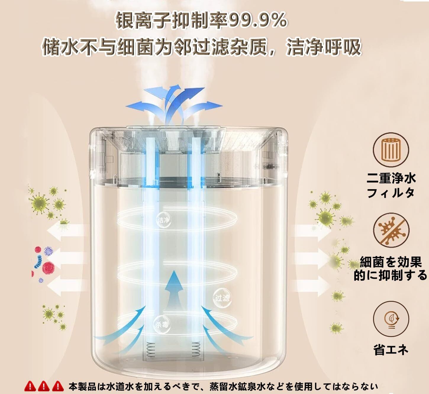 ご使用前に必ず取扱説明書をご覧ください。 【2024新一体化設計・省エネ・極静音】加湿器 大容量 強力な30〜40cm噴霧高度を実現するこの 卓上加湿器 は、その力強さであなたの部屋を瞬時に心地よく潤す 卓上加湿器 。 加湿器 うるおい パワフル加湿で、幅広い空間でもしっかりと湿度をキープ。デスクは濡れず、心地よい環境を手軽に作り出す 加湿器. さらに、この 加湿器 卓上 は極静音、僅か25dBの運転音で、静かな環境を邪魔することはありません。無音レベルの運転で、究極のうるおい体験をご提供な 超音波加湿器 です。寝ている間も、勉強や仕事中も、気にならない心地よさを。 注意:あらかじめ吸水芯を濡らしておくとミストの出方が早くなります。片側が曇っている場合は、まず下にバネがあるかどうかをチェックし、綿棒のもう一方の端を使用します。
