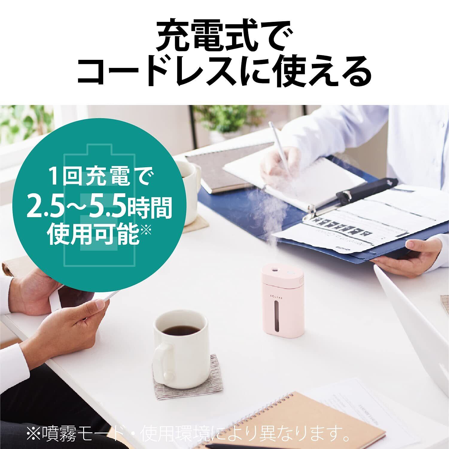 【2021年モデル】 エレコム 加湿器 コードレス 超音波式 抗菌 アロマディフューザー エクリアミスト USB給電 容量120ml 最大5.5時間 コンパクト 持ち運び 自動電源OFF機能 角度調整 スタンド付 次亜塩素酸水対応 ピンク HCE-HU2108UPN