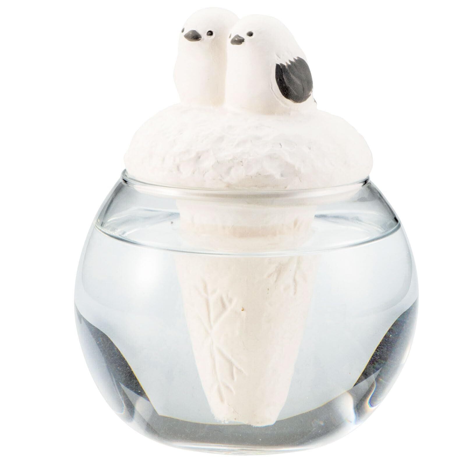 寄り添いあったシマエナガが愛らしいデザインのドーム型加湿器。