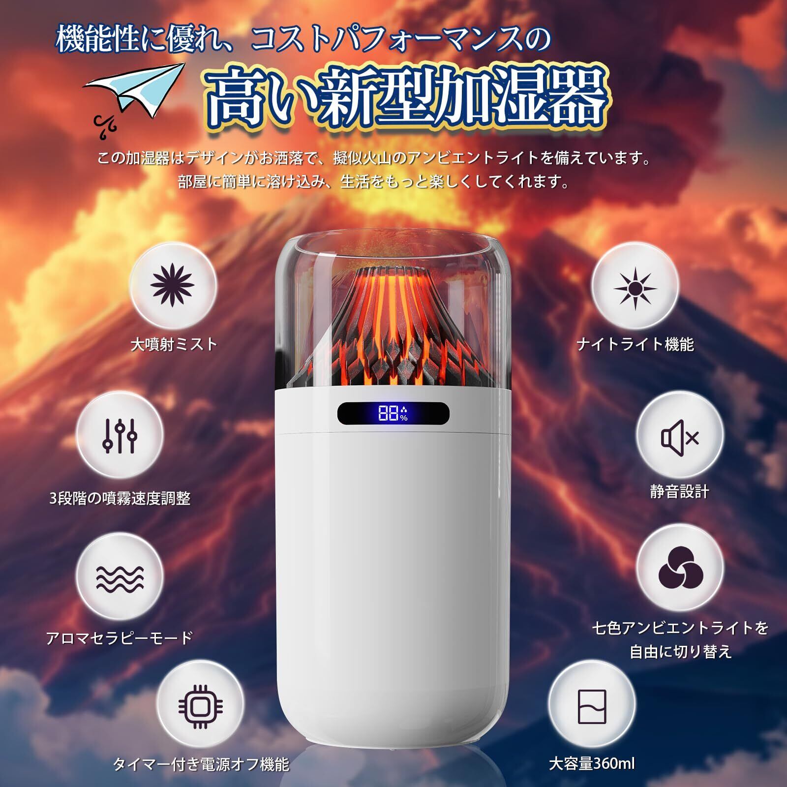 【2025 年新モデル】加湿器 アロマディフューザー 小型 LEDライト7色 Type-C 給電式 360ML 卓上小型加湿器 3 段階調節モード アロマ対応 空焚き防止 お手入れ簡単 静音 長時間運転 自動停止機能 防水パッキン設計 オフィス 子供部屋 寝室 車載 家庭用 (ホワイト) | kki