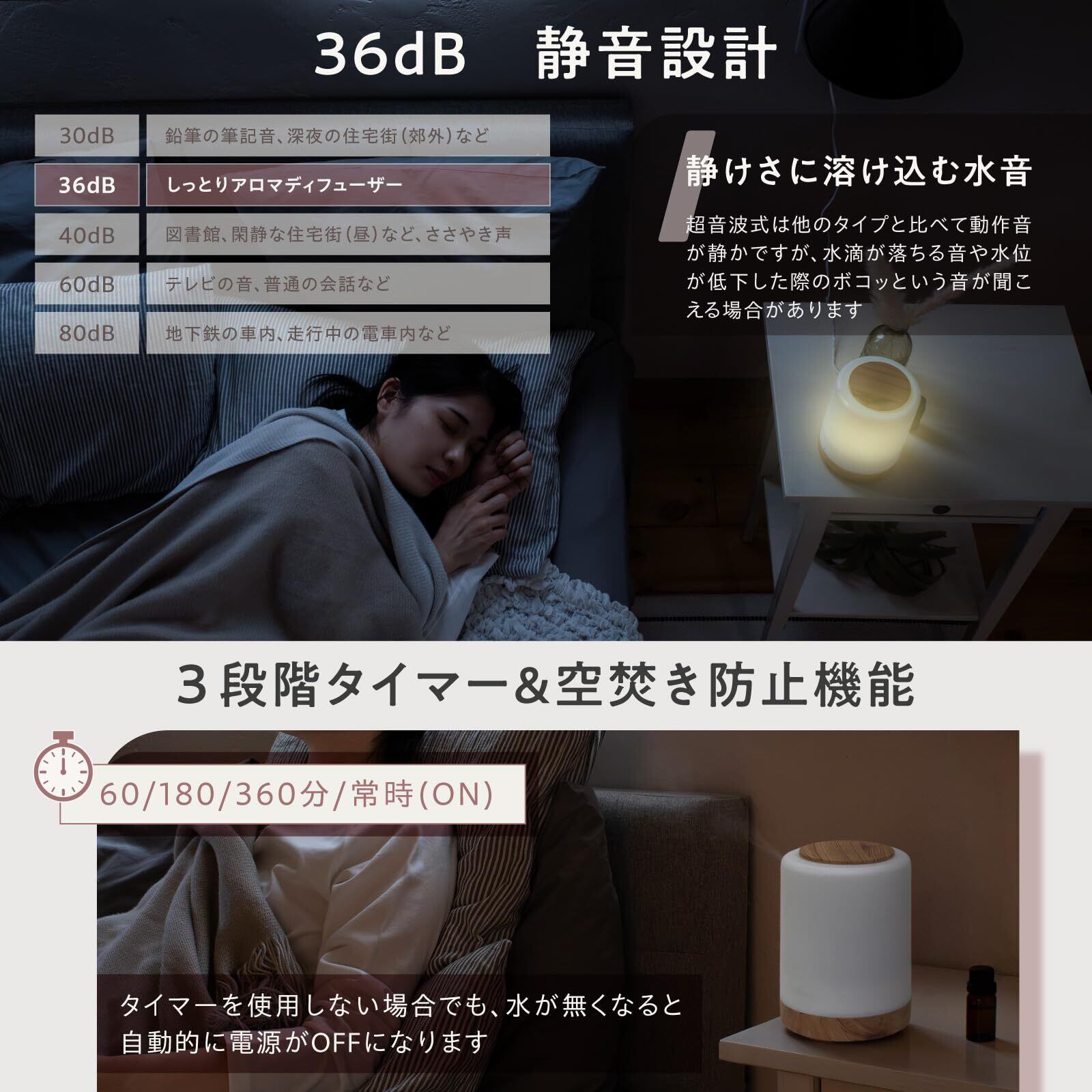 ベルモンド 加湿器 小型 卓上 代わりにも アロマディフューザー 超音波式 ワンルーム おしゃれ 木目調 7色LEDライト 3段階タイマー付き 静音 空焚き防止 お手入れ簡単 アロマ対応 300ml しっとりアロマディフューザー B1382 | kki
