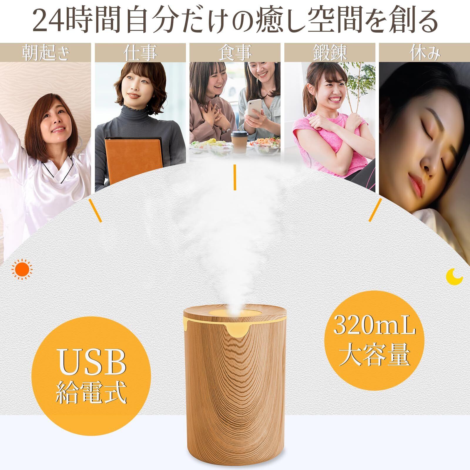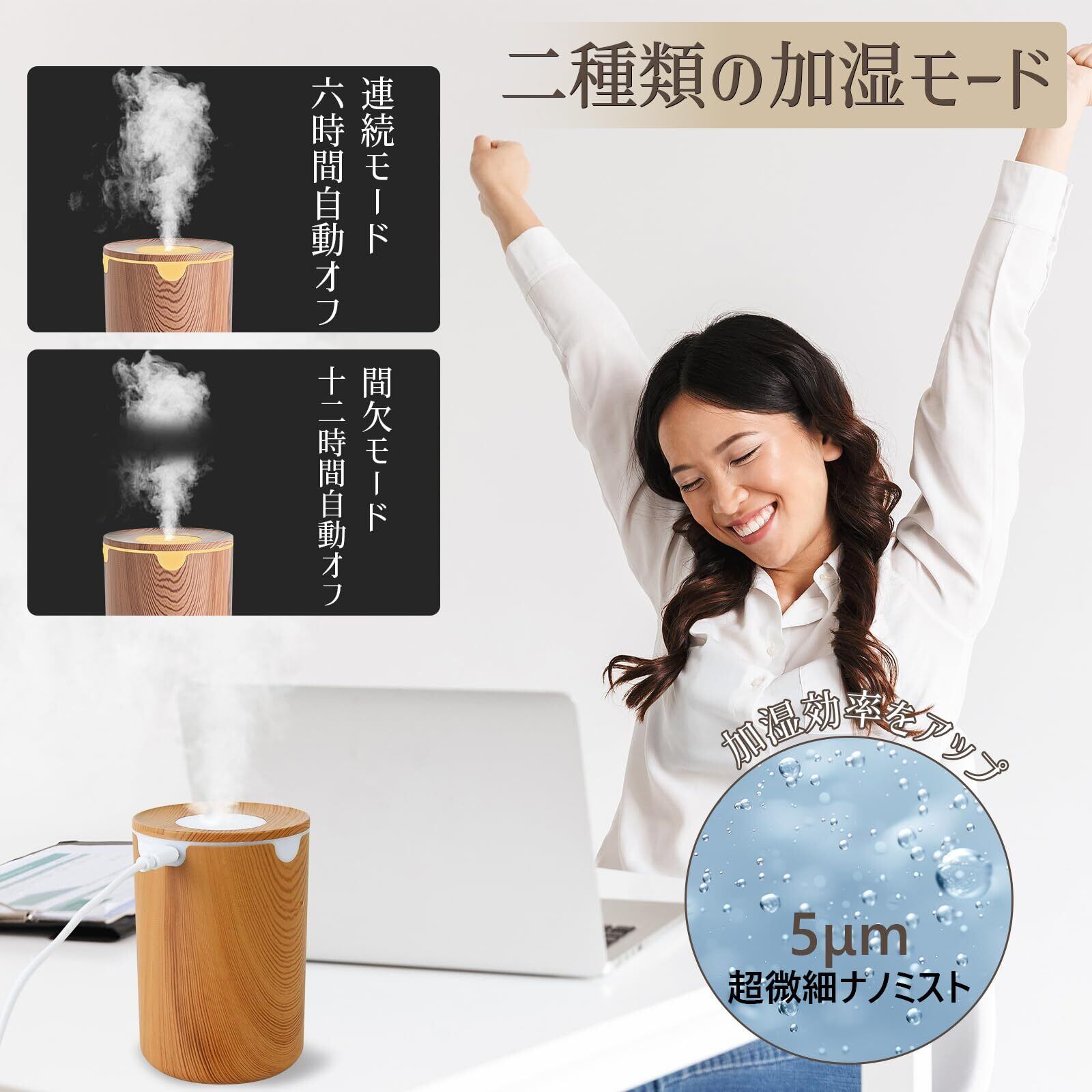 さえだ 加湿器 小型 卓上 加湿器 アロマ対応 除菌 卓上 木目調 LEDライト 超音波 静音 大容量320ML 車載 USB給電 軽量 持ち運び便利 コンパクト 自動停止機能 空焚き防止 小型 卓上 2段階ミスト 秋冬乾燥対策 花粉対策 次亜塩素酸水対応 ミニ 水漏れ防止 (木柄) | kki