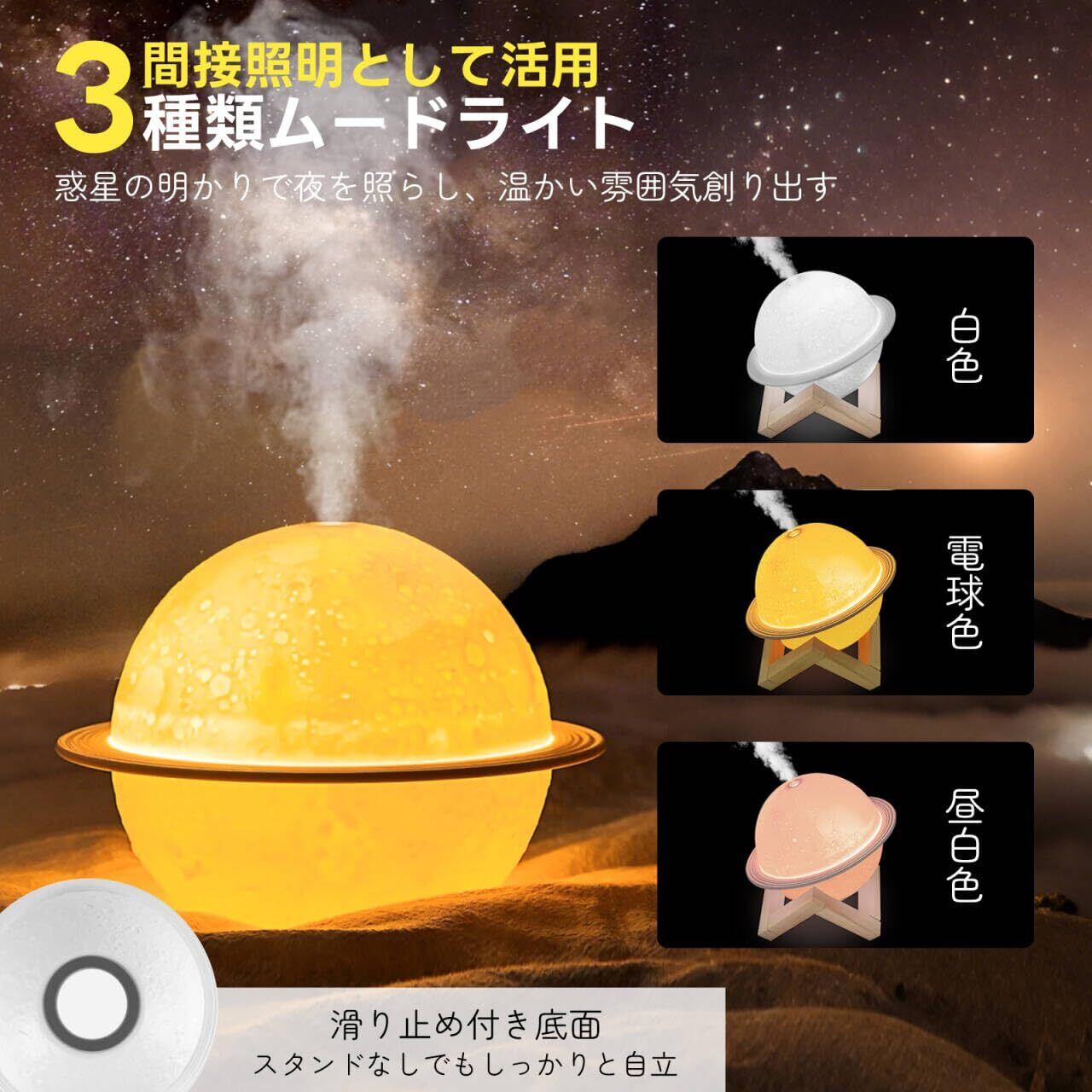 Athvcht 加湿器 小型 卓上 超音波【惑星加湿器・間接照明・アロマデュフューザー】一台三役 アロマ対応 除菌 卓上 3色ライト 土星 惑星ランプ 静音 200ML 軽量 USB給電 持ち運び便利 コンパクト 空焚き防止 2段階ミスト 秋冬乾燥対策 花粉対策 次亜塩素酸水対応 ミニ 水漏れ防止 オフィス/部屋/寝室/車用/家庭用