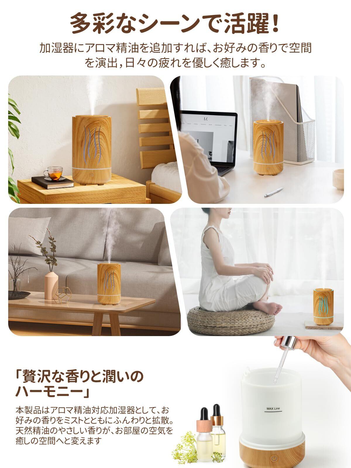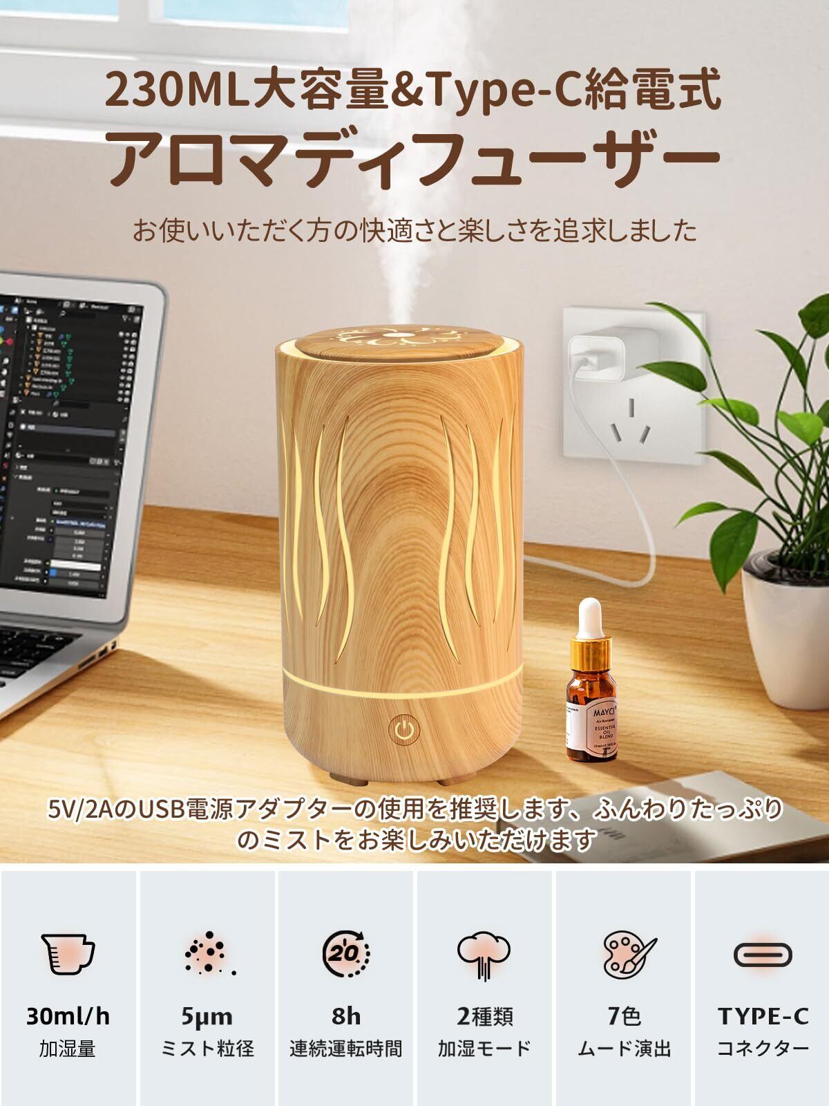 【2025新登場・一台多役】加湿器 小型 アロマディフューザー 卓上 Type-C給電式 超音波式 大容量230ML アロマ対応 RGBライト 自動停止機能 空焚き防止 静音 持ち運び便利 軽量次亜塩素酸水対応 乾燥/花粉症対策 子供部屋 寝室 家庭用(ウッドカラー)