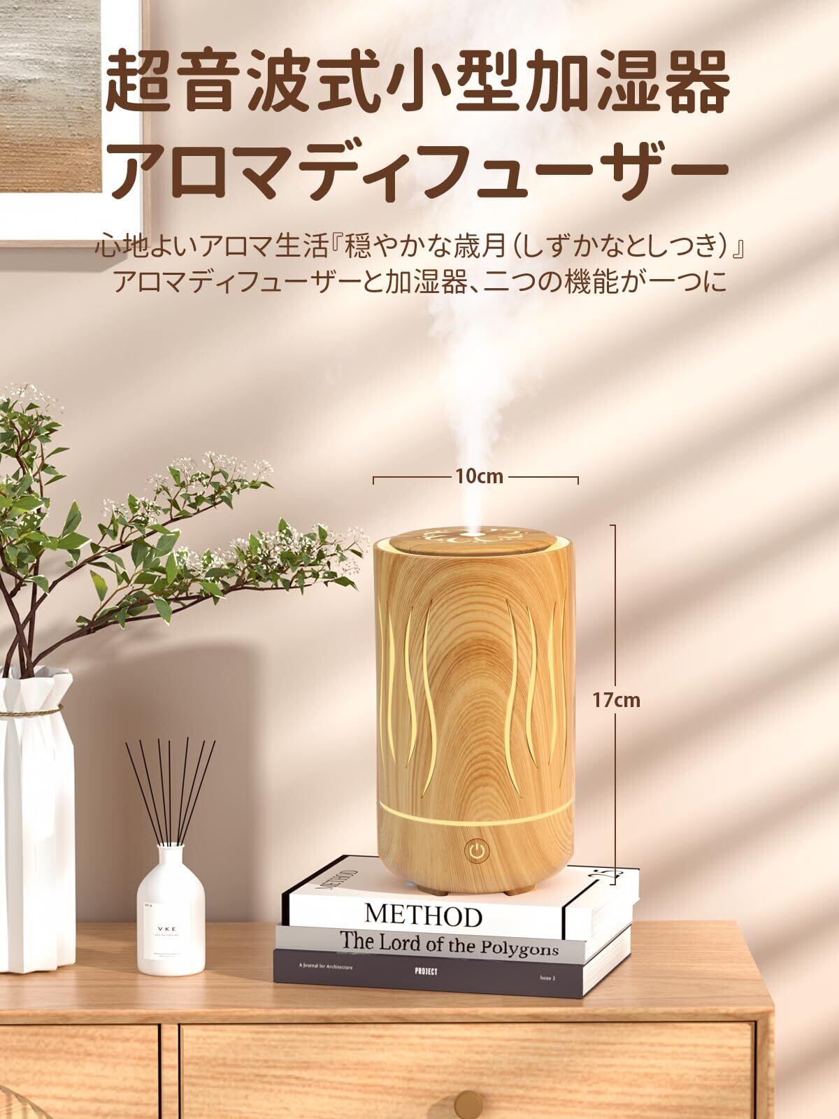 【2025新登場・一台多役】加湿器 小型 アロマディフューザー 卓上 Type-C給電式 超音波式 大容量230ML アロマ対応 RGBライト 自動停止機能 空焚き防止 静音 持ち運び便利 軽量次亜塩素酸水対応 乾燥/花粉症対策 子供部屋 寝室 家庭用(ウッドカラー) | kki