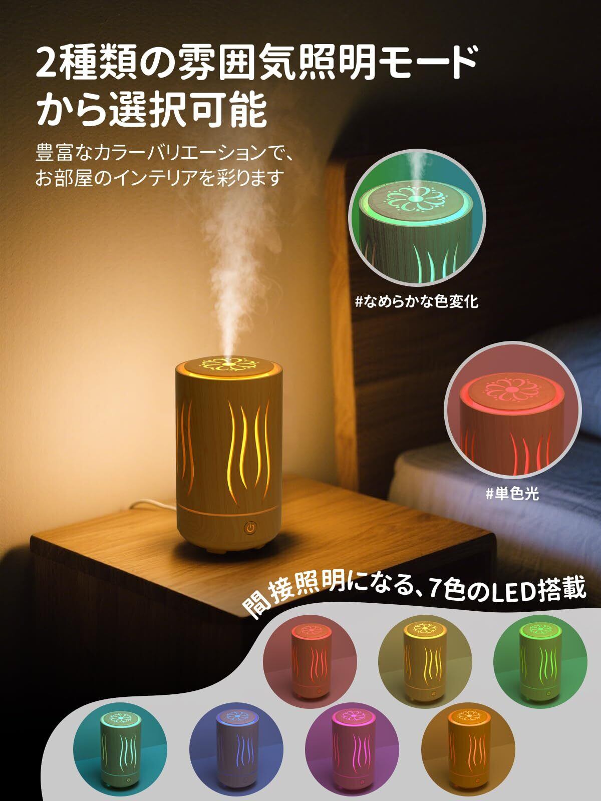 特徴 アロマディフューザー, ナイトライト, 水量低下インジケーター, 漏れ防止, 軽量