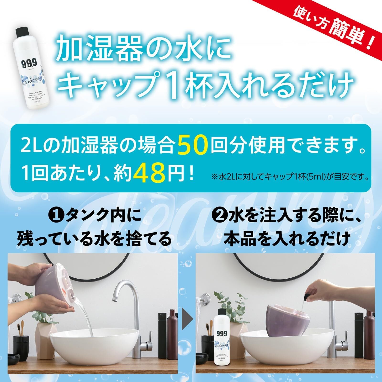 【水だけで加湿するのはもったいない!】99.9加湿器用除菌消臭ウォーター250ml 希釈50回分 タンクにキャップ一杯入れるだけ 天然成分100% 国内生産 無添加 無香料 加湿機能付空気清浄機も可 タンクのヌメリ対策にも