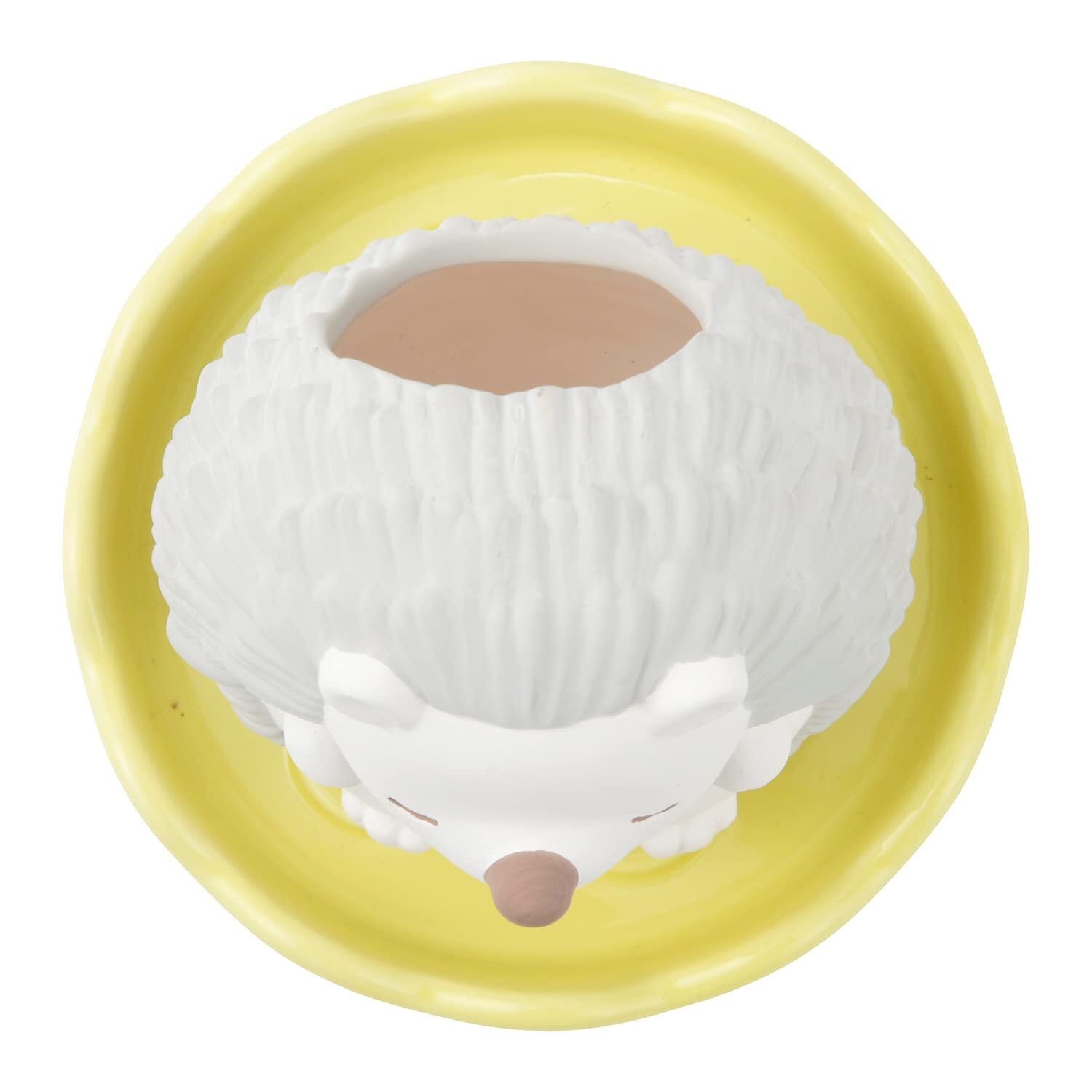 りぶはあと 素焼き加湿器 ちょこんと加湿器 ハリネズミのハリー (全長約10cm) エコ 卓上 98008-72 ポット本体:W9xD8.2xH9.5cm、受け皿:W11.5xD11.5xH2.5cm | kki