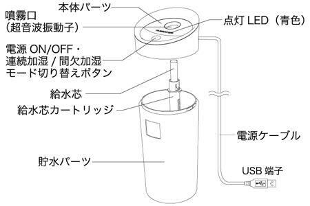 付属品:USB電源ケーブル(約110cm)/交換用給水芯1本