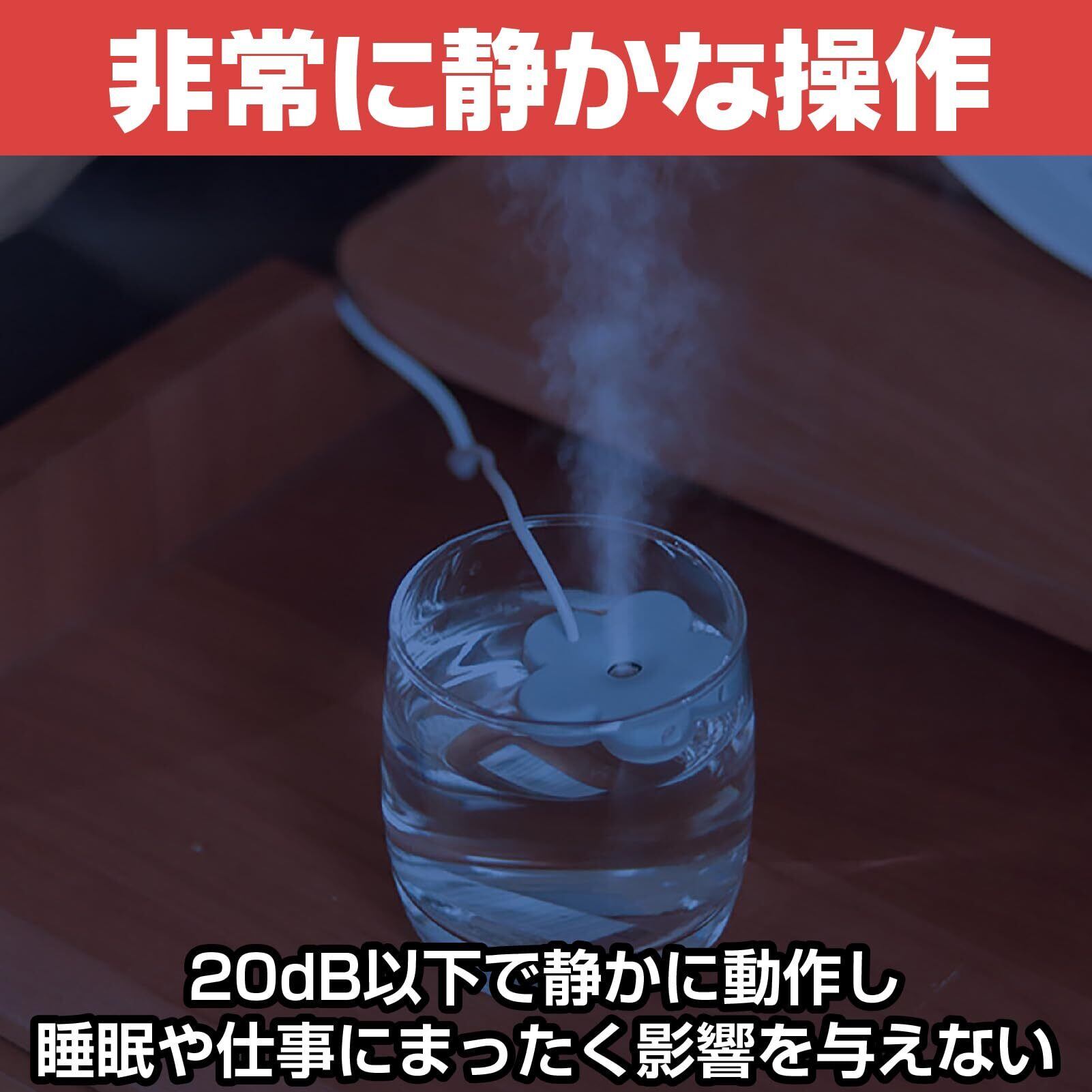 【静音動作で快適な使用感】 動作音が静かで、オフィスや就寝時にも気になりません。仕事や勉強の邪魔をせず、静かな環境で快適に加湿できます。特に乾燥しがちな冬やエアコンの効いた部屋に最適で、手軽に空間の潤いを保つことができます。