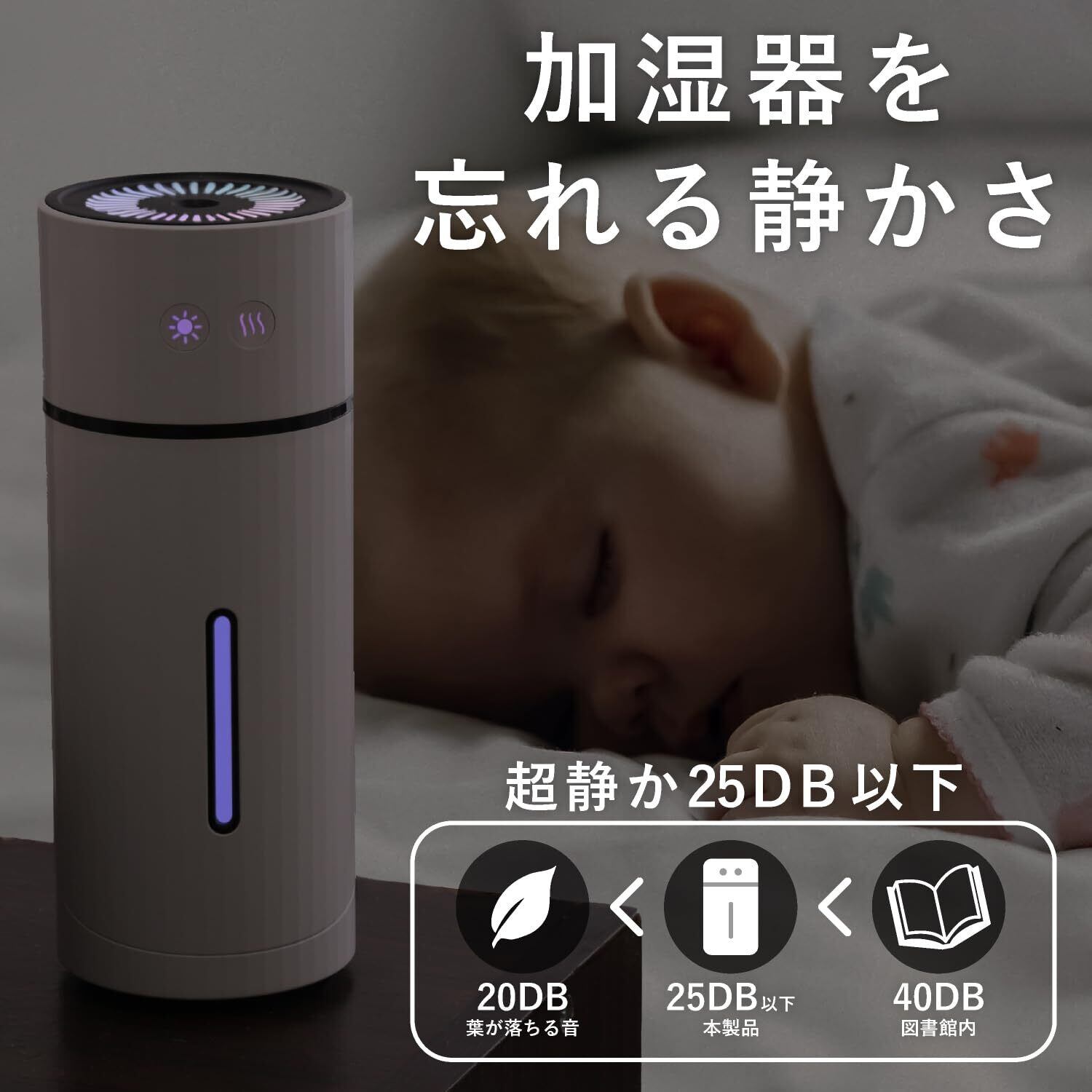 【加湿器 小型 &USB電源】ペットボトル型で、7.2cm x 7.2cm x 18.5cmのコンパクトサイズで、 加湿器 寝室 ・オフィスでの使用はもちろん、 車載加湿器 として移動中の使用や、 アウトドアや外出先でもスマートに潤う!USB給電式ですのでモバイルバッテリー、PC、車載シガーソケット等のUSB電源から電源を取れるので、利便性が高く、どこでも使える加湿器 です。