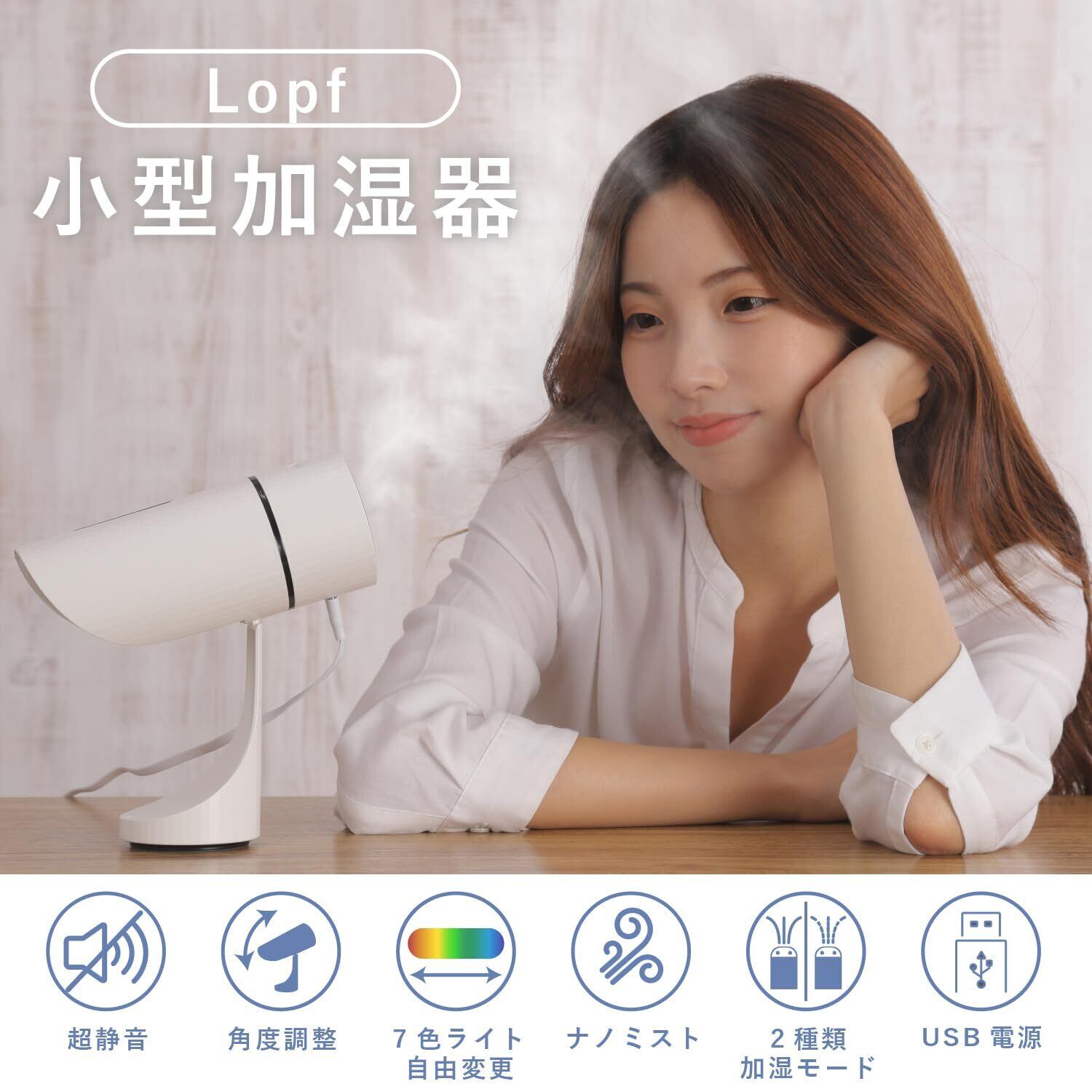 【角度自由調整】 Lopf 加湿器 卓上 小型 USB電源 卓上加湿器 静音 超音波式加湿器 車載加湿器 持ち運び便利 コンパクト 2段階ミスト 7色LEDライト 間接照明 乾燥対策 花粉対策 水漏れ防止 長時間運転 自動停止機能 オフィス 子供部屋 寝室 家庭用 ホワイト