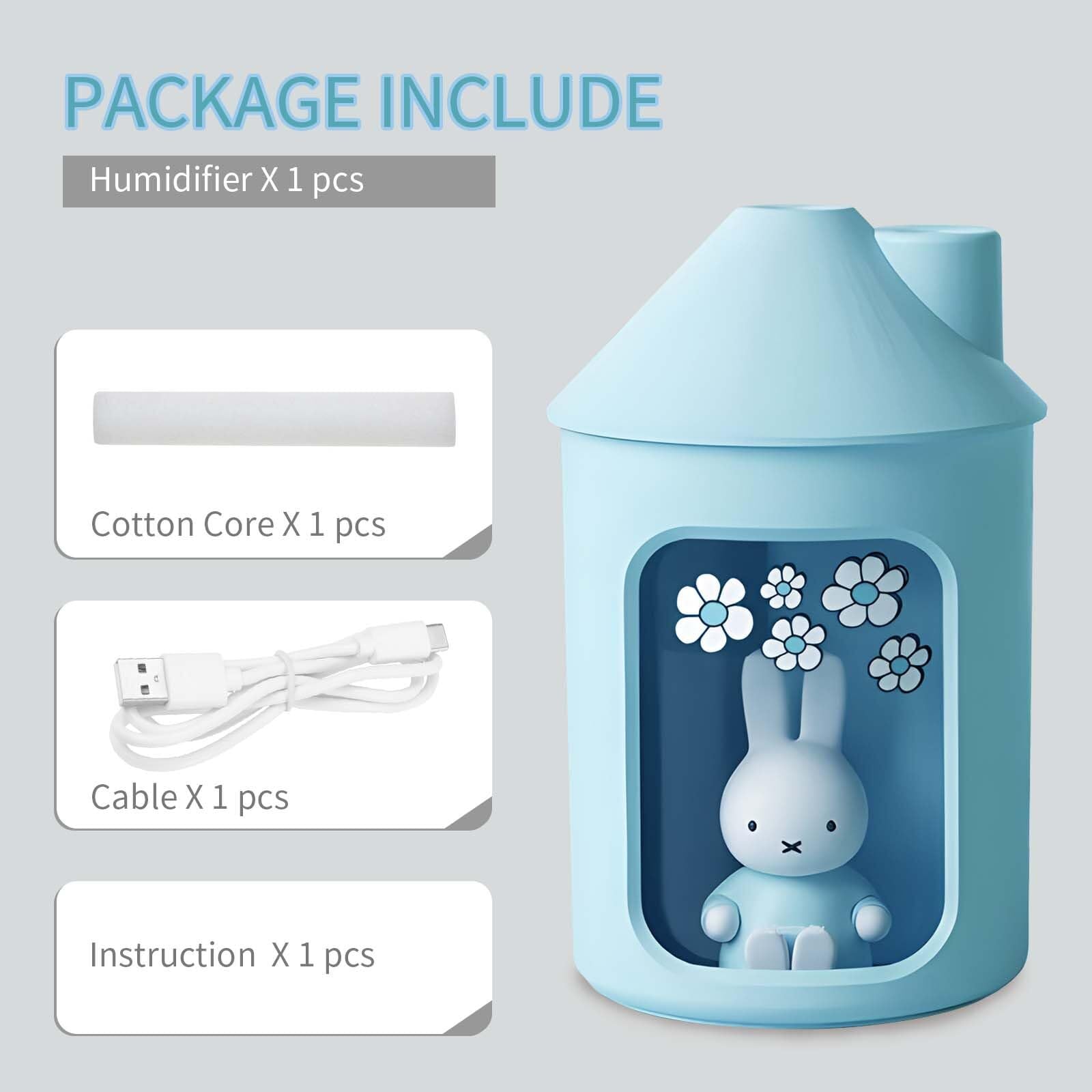 Mipow x miffy - クールミスト加湿器 寝室用 超音波静音加湿器 ナイトライト付き 450ml ダブルスプレー加湿器 保育園 オフィス 屋内植物用 (ブルー)