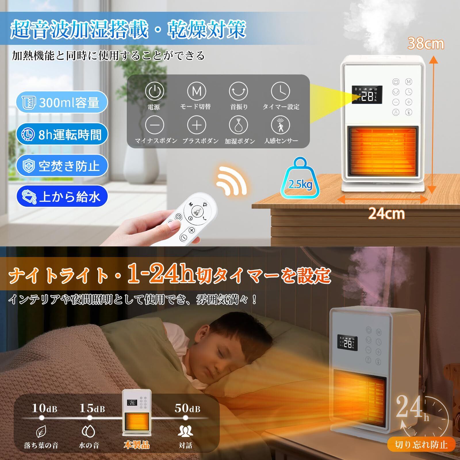 セラミックヒーター【2025冬新型 暖房・加湿・空気清浄】超音波加湿搭載 人感センサー付 ECO知能恒温 節電対策 LED大型ディスプレ カラーLEDライト 自動首振 電気ストーブ セラミックファンヒーターり電気ヒーター 1秒速暖 4段階切替 24時間タイマー機能 1200W/800W 転倒自動オフ 過熱保護 暖房器具 脱衣所 洗面所 台所 PSE認証済 | kki