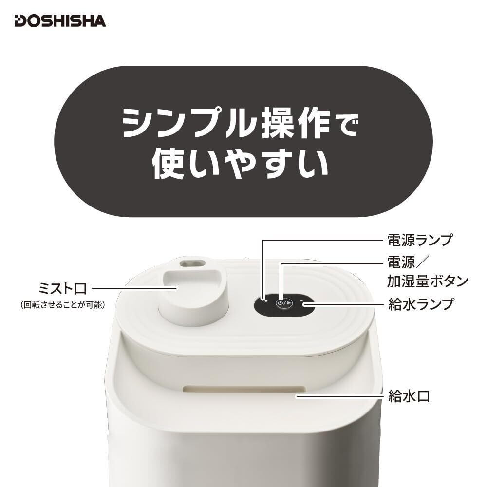 ドウシシャ 加湿器 超音波式 加湿量260ml 大容量3.6L 連続加湿13.5時間 カンタン給水 アロマ対応 ホワイト KWZ-261WH