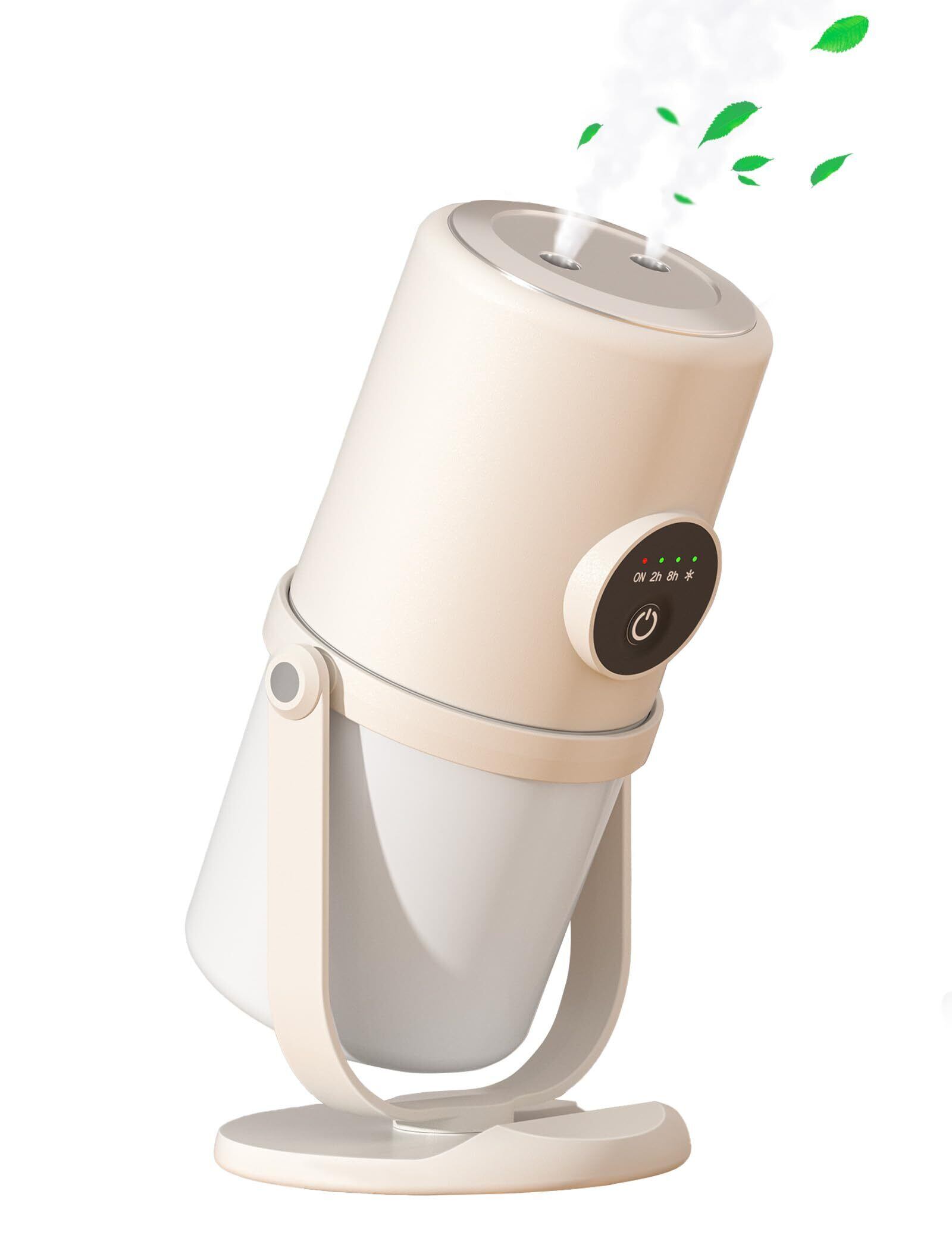 【2025新型・上下角度調整+LEDライト】卓上加湿器 オフィス 小型 300ml大容量 ミニ加湿器 超音波式 静音 空焚き防止 水漏れ防止 持ち運び便利 上から給水 お手入れ簡単 部屋 車用 寝室 家庭用 乾燥/花粉対策 母の日/父の日/誕生日/ギフト (ベージュ)