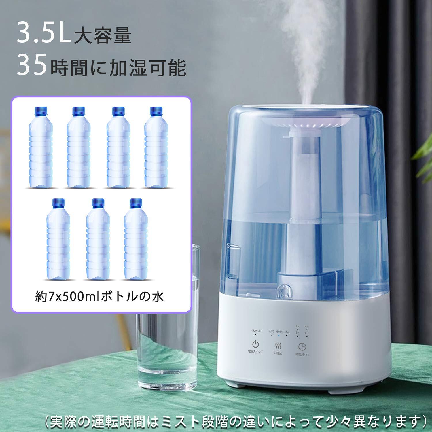加湿器 卓上 超音波式 大容量 3.5L 除菌 タッチパネル式 空焚き防止機能 タイマー機能 LEDライト 家庭/オフィス/学校/事務所などに適用 一年間付き(ブルー)